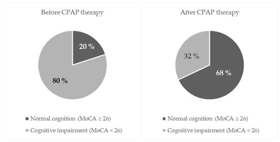 Prevalence of cognitive impairment before and after CPAP therapy.