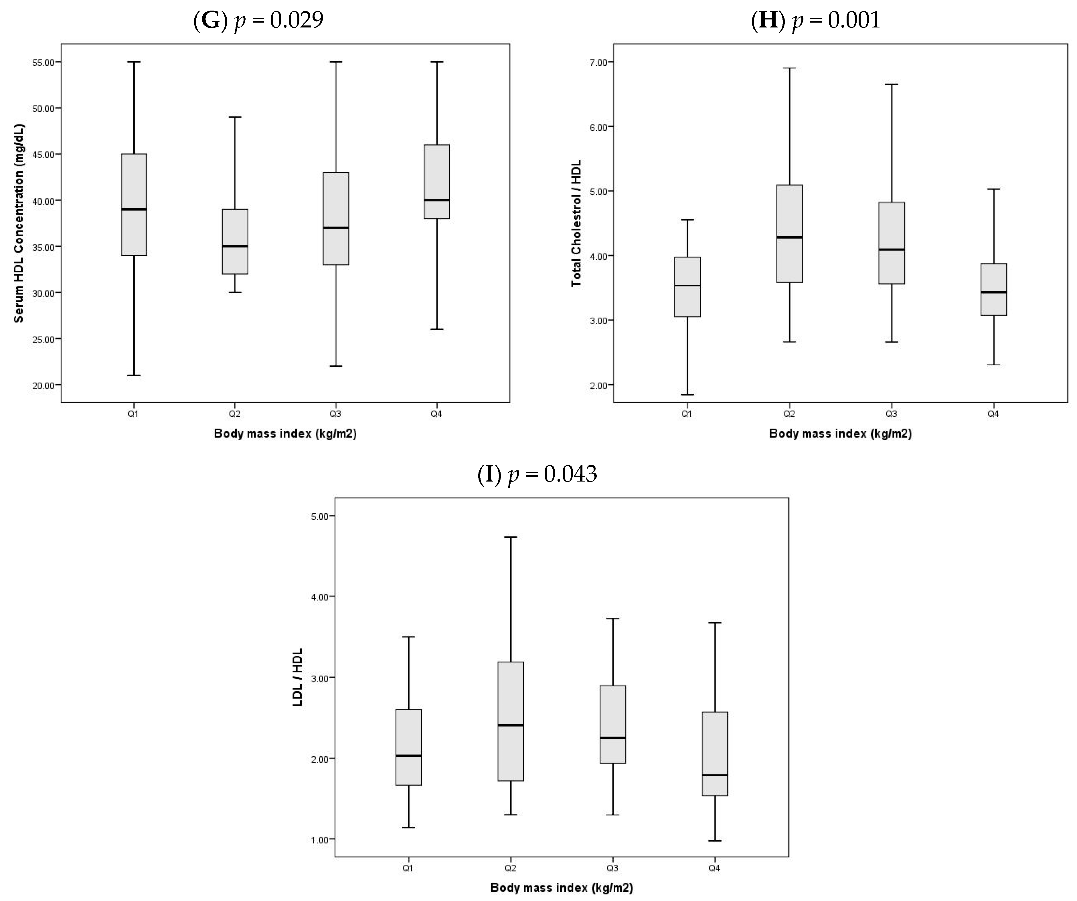 Figure 1, which details the distribution of metabolic markers across the four BMI quartile groups. Given the exploratory nature of this cross-sectional study,