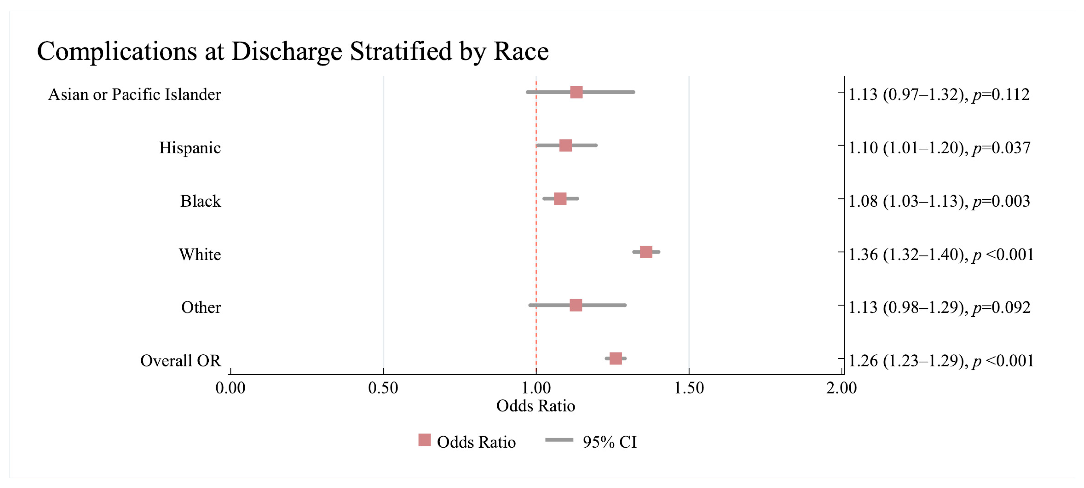 The Association Between Complications at Discharge and Race/Ethnicity and Sex