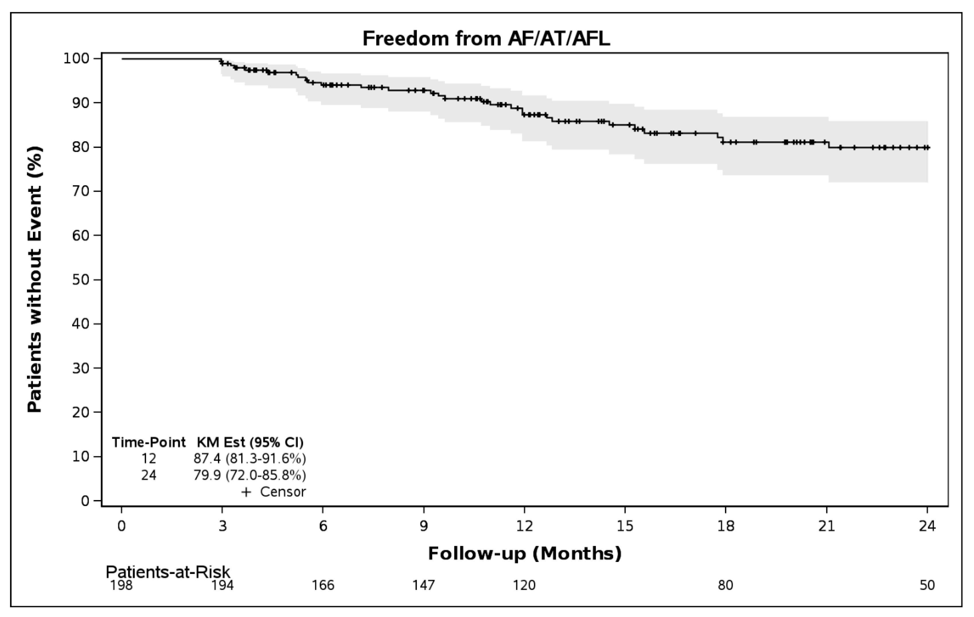 | Freedom from AF/AT/AFL: | 87.4% (81.3–91.6) | 89.4% (82.4–93.7) | 80.5% (58.5–91.6) |