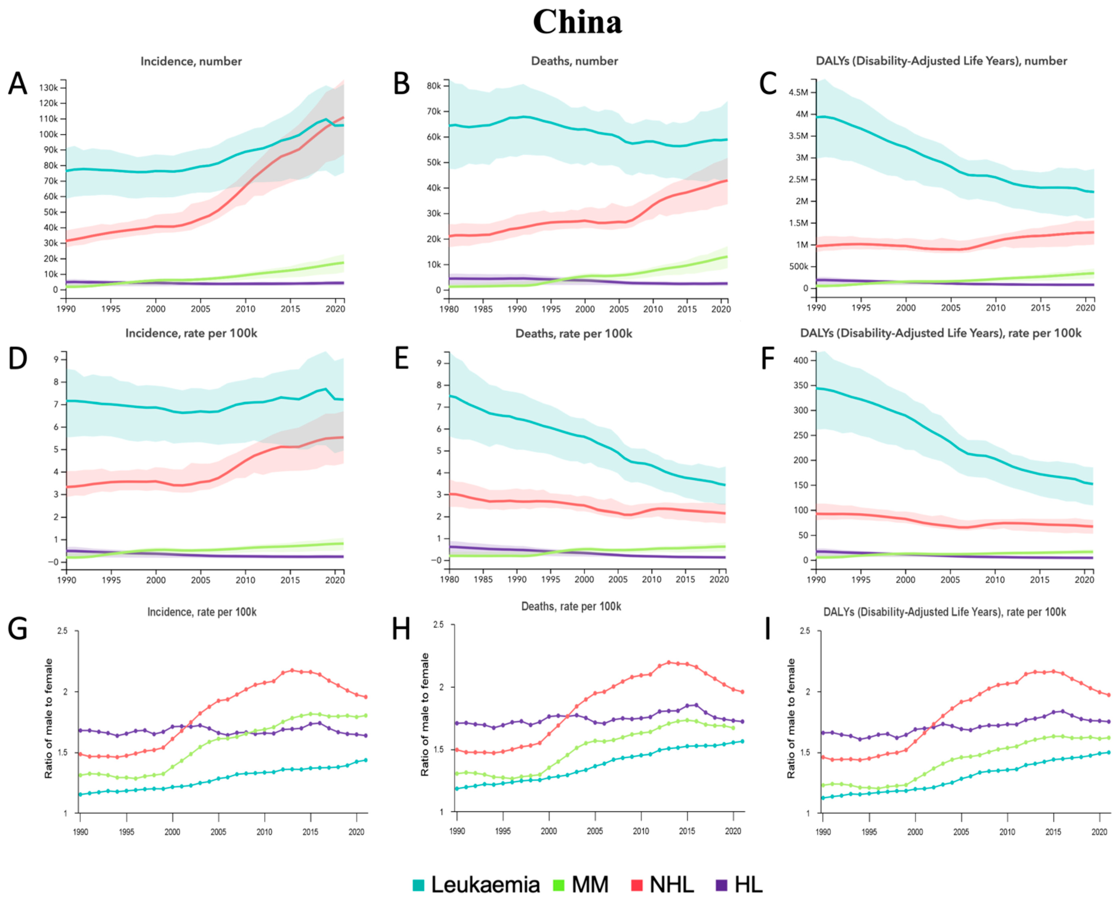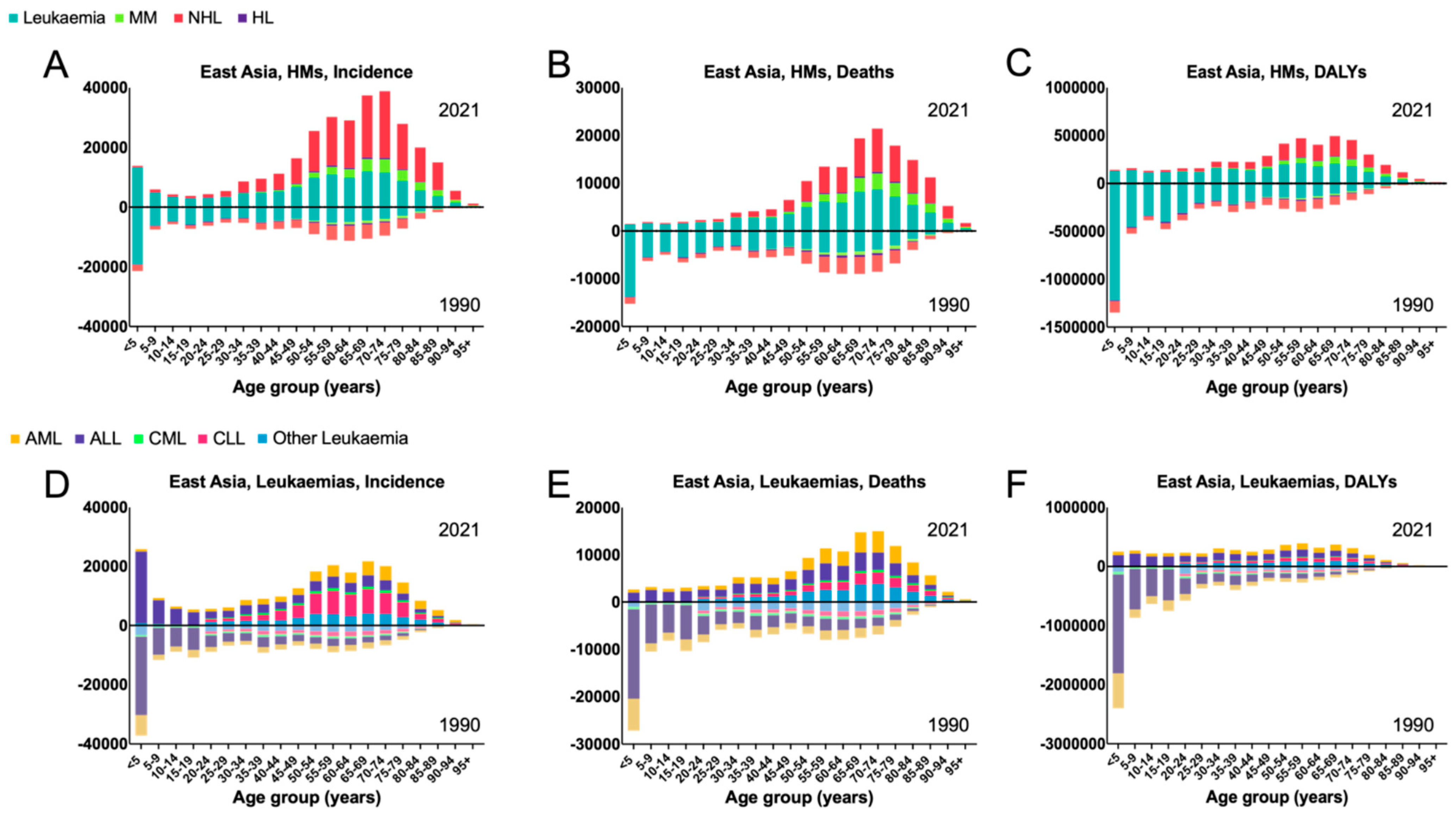 Burden of Hematological Malignancies in East Asia from 1990 to 2021