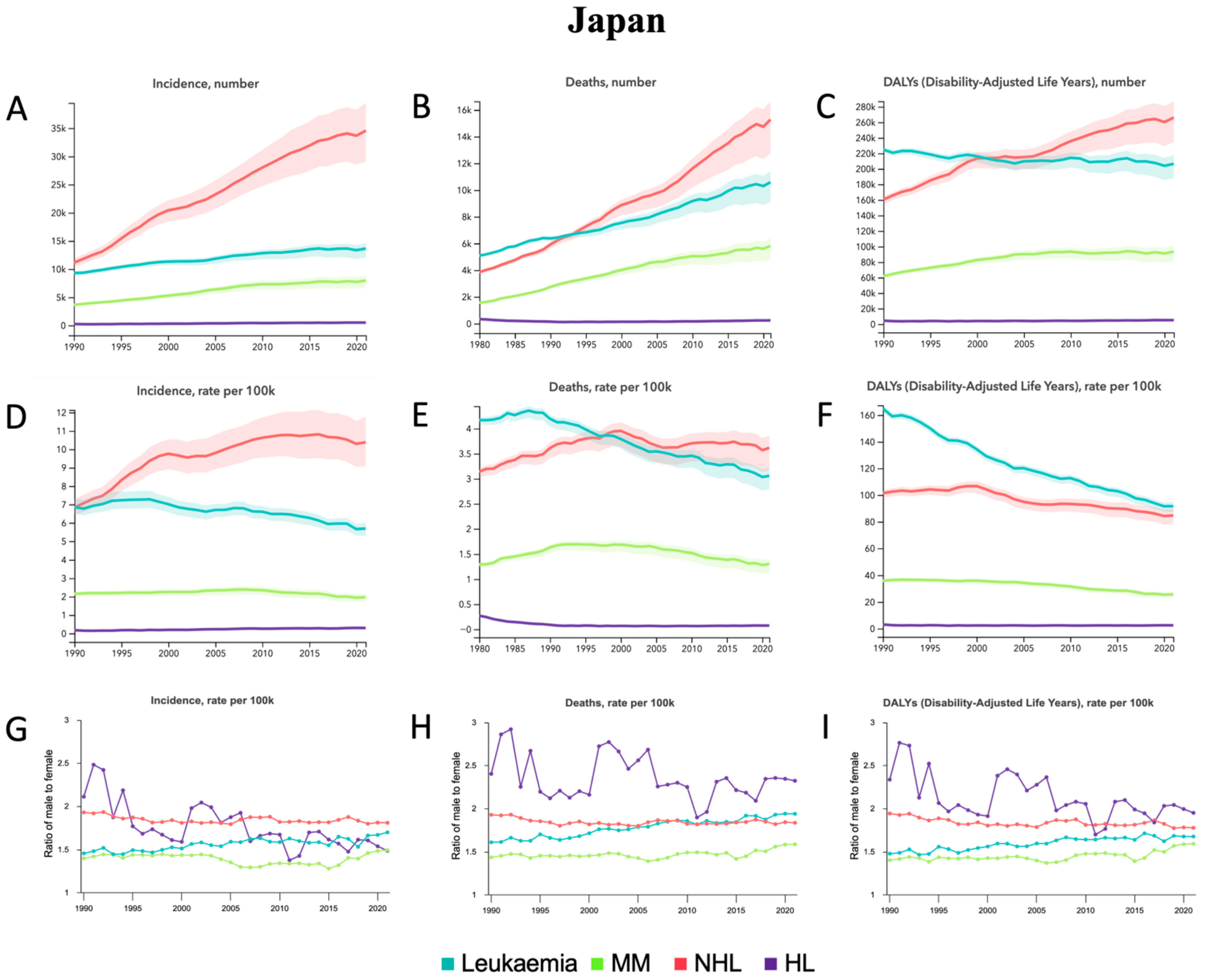 Wu JF, Ho FDV, Columbres RC, Tudisco A, Jain U, Selokar A, Swami N, Jain B, Hong JH, Feliciano EJG, et al. Burden of Hematological Malignancies in East Asia from 1990 to 2021. Journal of Clinical Medicine. 2025; 14(23):8381. https://doi.org/10.3390/jcm14238381