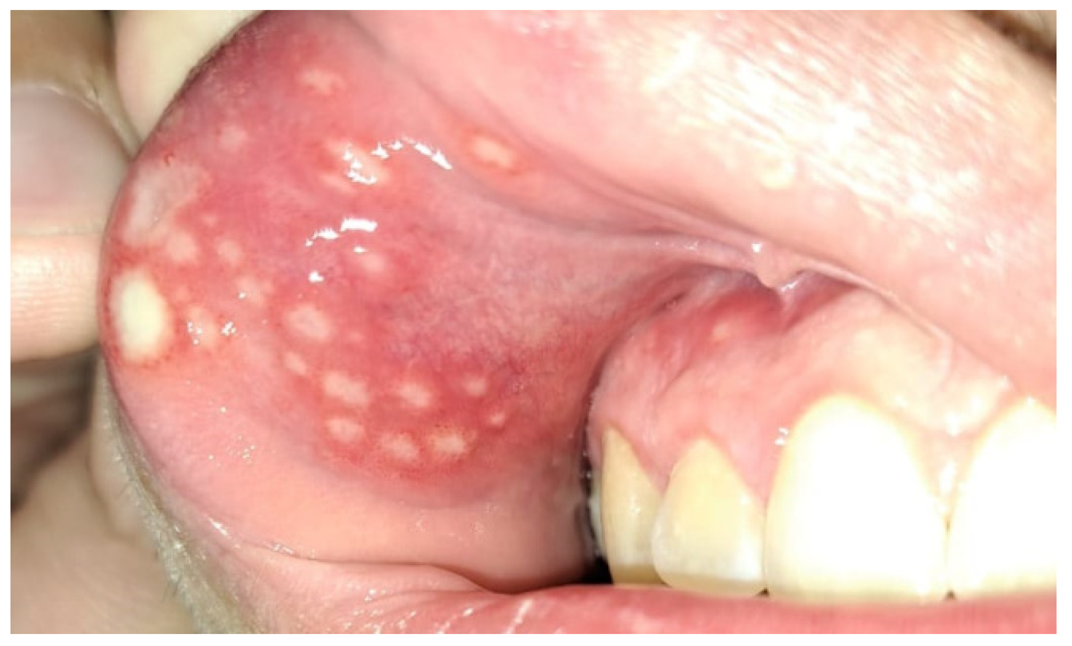 - Esquivel-Pedraza, L.; Fernández-Cuevas, L.; Delgado-Martínez, I.; Cicero-Casarrubias, A.; Milke-García, M.D.P.; Chang-Bool, E.M.; Barragán-Heredia, L.M.; Maldonado-Molina, J.; Rivera-Flores, R.L.; Yamamoto-Furusho, J.K.; et al. Oral Mucosal Findings in Ambulatory Patients with Inflammatory Bowel Disease. Braz. Oral Res. 2025, 39, e095. [Google Scholar] [CrossRef] [PubMed]