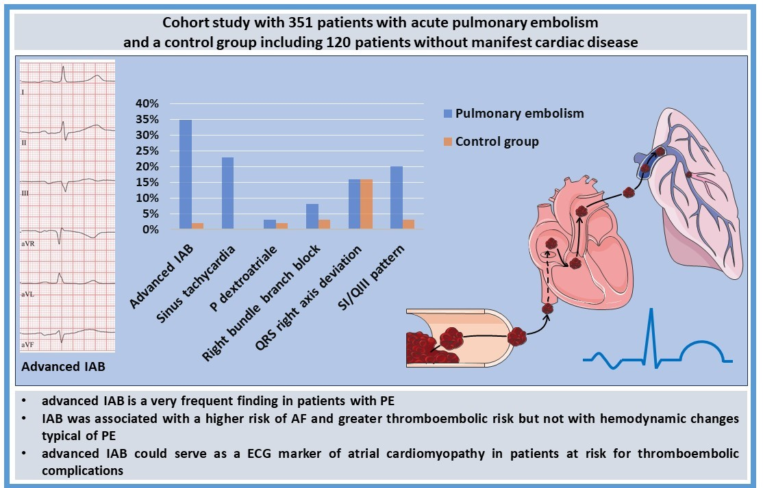 - An advanced IAB was by far the most important ECG parameter for the diagnosis of PE.