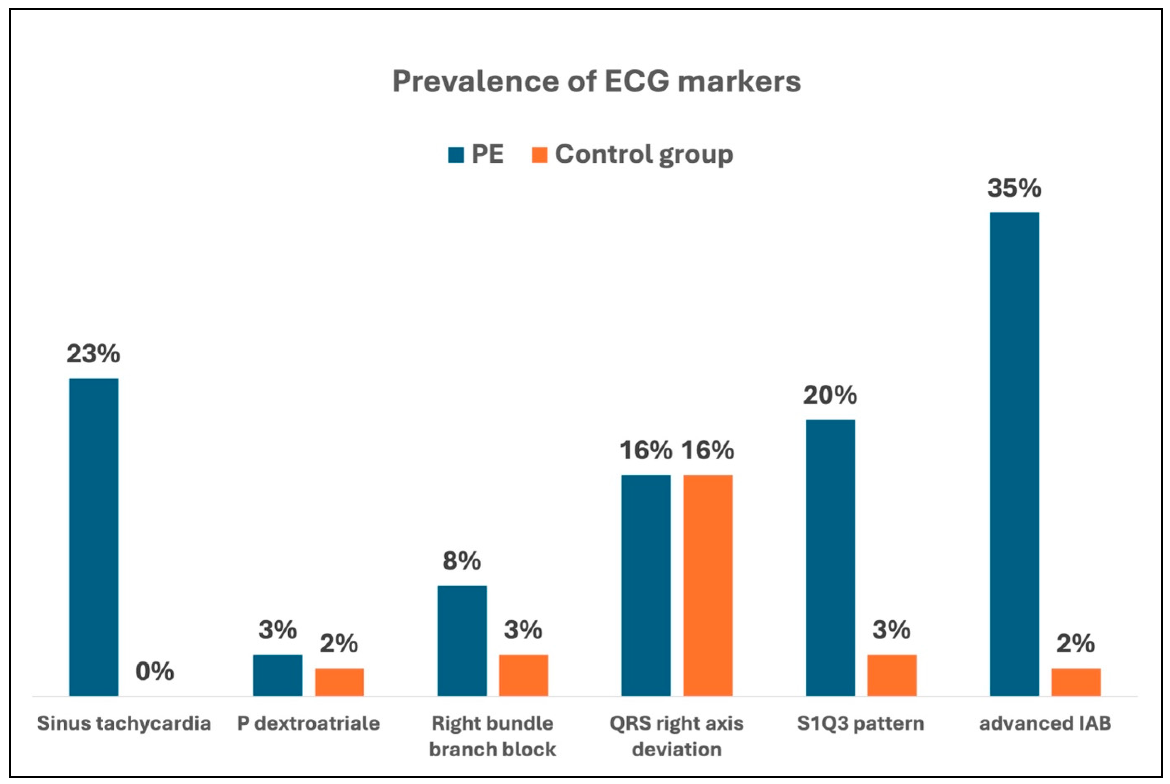 - Advanced IAB was detected in 35% of PE patients, more frequently than other typical PE ECG signs like sinus tachycardia.