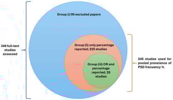 The OR, derived from longitudinal, case–control, and cross-sectional studies, offers a more robust measure of association than simple percentages. It accounts for the relative likelihood of an outcome following a specific exposure, thereby providing deeper insight into potential individualized risk. For this reason, we aimed to conduct a meta-analysis of all peer-reviewed, two-armed primary studies to calculate a pooled OR for PSD [].