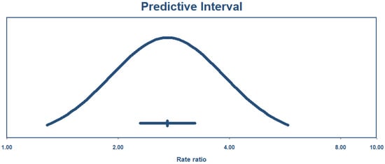 As shown in Figure 9, the true effect size with a 95% predictive interval ranges from 1.28 to 5.75, meaning that future studies will report an OR of at least 1.28 with 95% certainty.