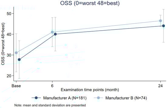 A comparison between manufacturers revealed that using Manufacturer B anchors resulted in a statistically non-significant increase of 0.33 points in OSS (see Figure 4) compared to Manufacturer A anchors (p = 0.85).