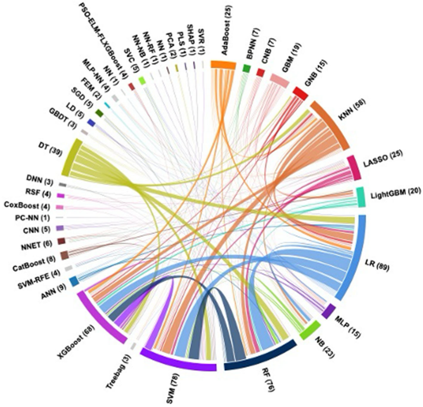 | Chen et al. [25] | Simple decision tree, Random Forest, XGBoost, SVM and Multivariable logistic regression | SVM (Fit.SVM) | Cerebral malperfusion, mesenteric malperfusion, critical preoperative status, D-dimer, platelet count, CABG, intraoperative blood product transfusion, and cardiopulmonary bypass time. | SVM-based Fit. SVM model achieved the highest predictive accuracy for in-hospital mortality after extended aortic arch repair in ATAAD patients, with an AUC of 0.782 in the testing cohort. |