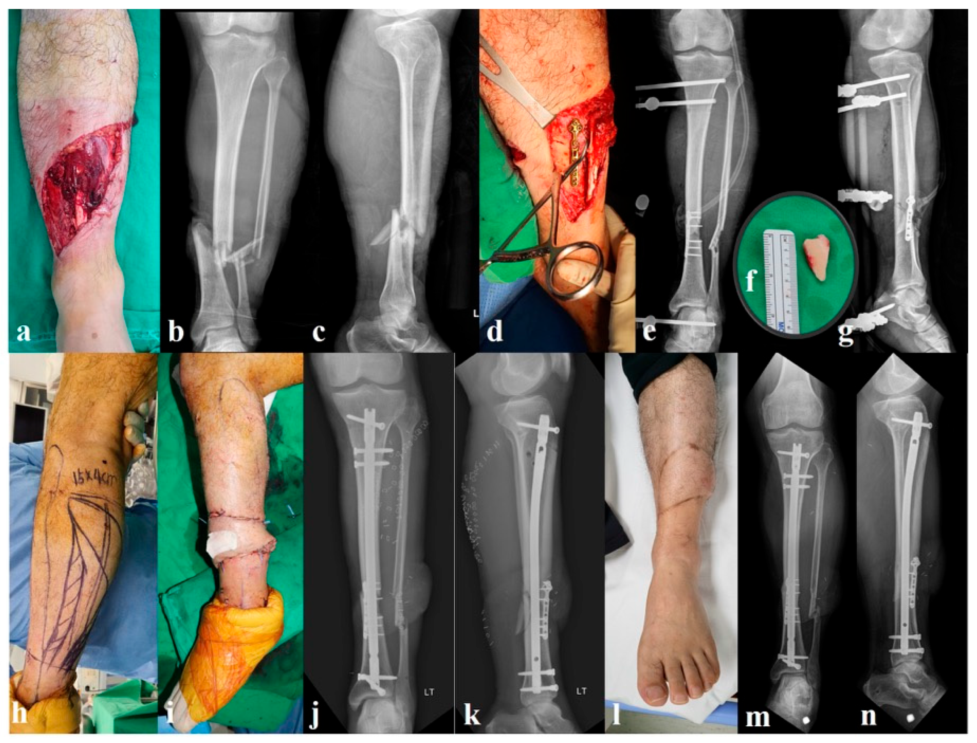 - Hull, P. The management of open tibial fractures. Eur. J. Orthop. Surg. Traumatol. 2008, 18, 441–447. [Google Scholar] [CrossRef]