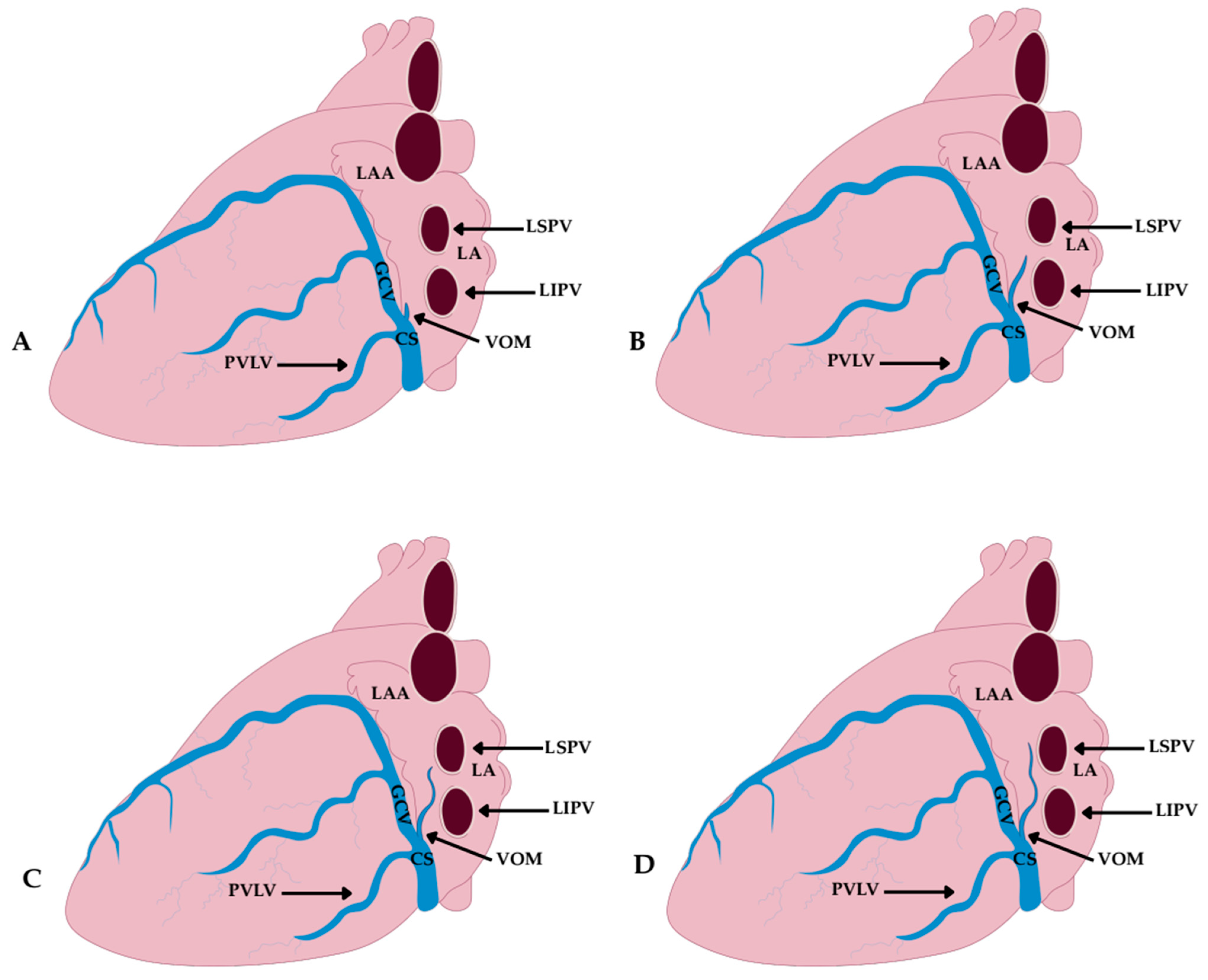 - Depes, D.; Chłopaś, K.; Gil, K.; Ratajska, A. The autonomic nerves around the vein of Marshall: A postmortem study with clinical implications. APMIS 2024, 132, 165–175. [Google Scholar] [CrossRef]