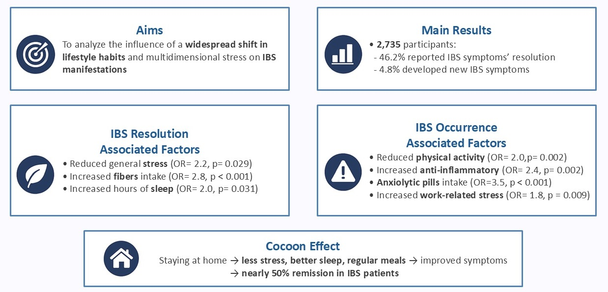 Kayali, S.; Marabotto, E.; Bodini, G.; Marenco, S.; Labanca, S.; Pieri, G.; Zentilin, P.; Giannini, E.G.; Furnari, M. Stress, Diet, and Sleep Shape Irritable-Bowel-Syndrome-Specific Symptoms: The Lockdown “Cocoon Effect”. J. Clin. Med. 2025, 14, 8487. https://doi.org/10.3390/jcm14238487