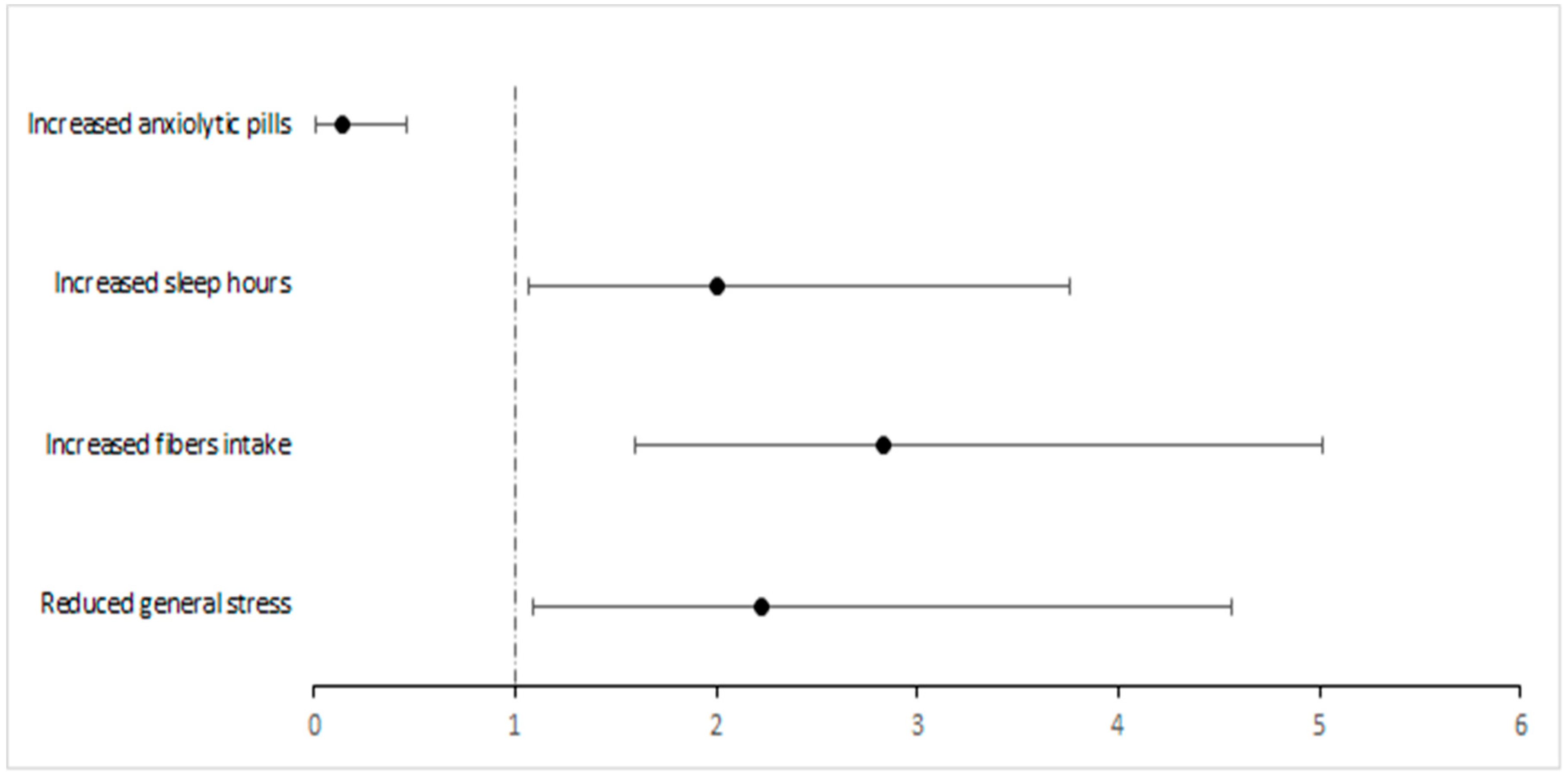 | Reduced anxiolytic pills | 4.66 (0.50–43.3) | 0.18 | |