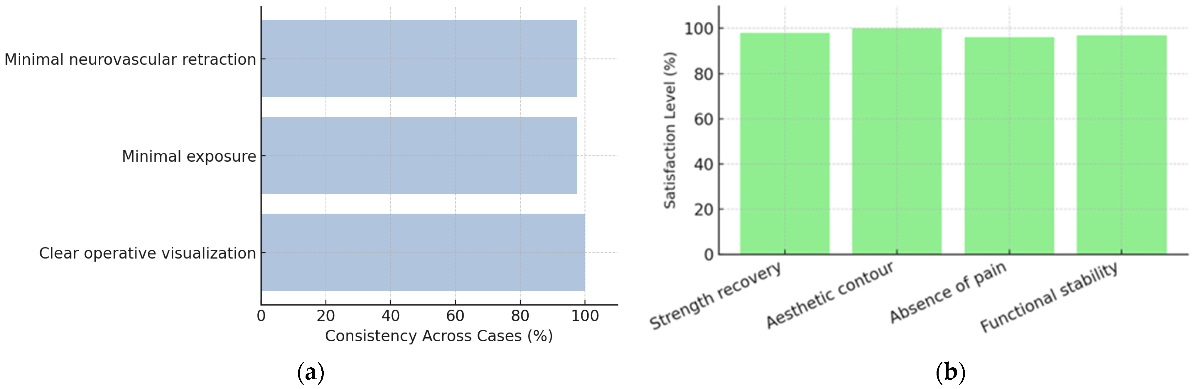 - Patient satisfaction: evaluated using a 5-point Likert scale (1 = poor, 5 = excellent).