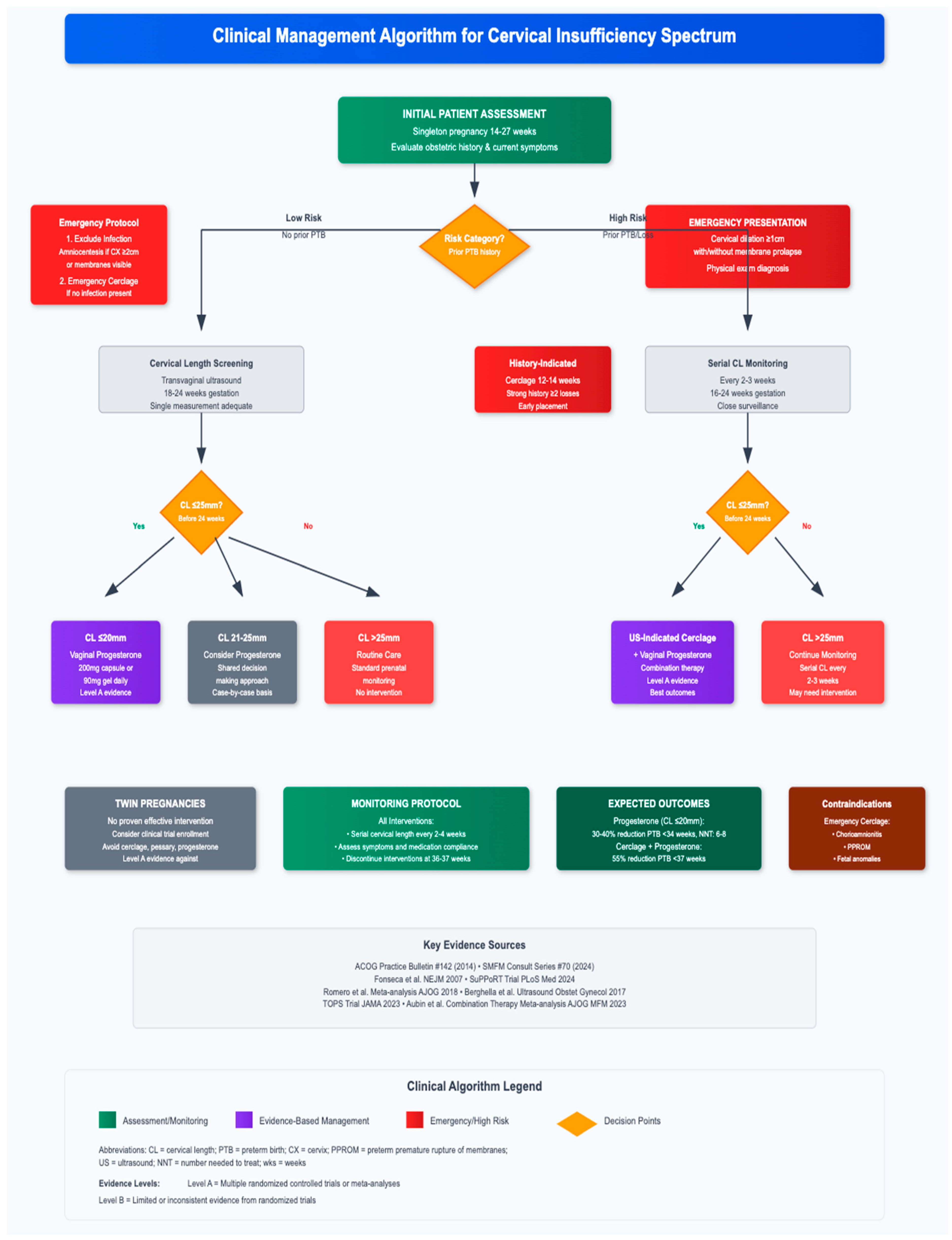 | Diagnostic Category | Specific Clinical Criteria | Cervical Length Threshold | Evidence-Based Management | Evidence Level | Typical Success Rate |