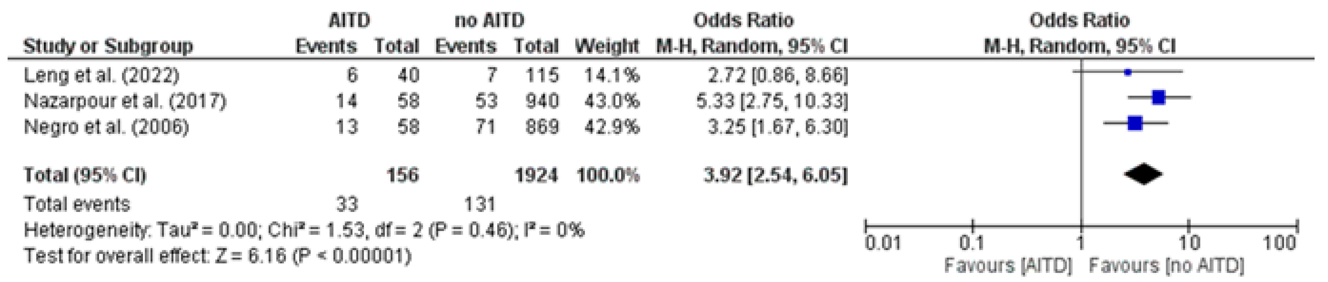 3.11. Miscarriage: AITD Patients vs. Non-AITD Patients