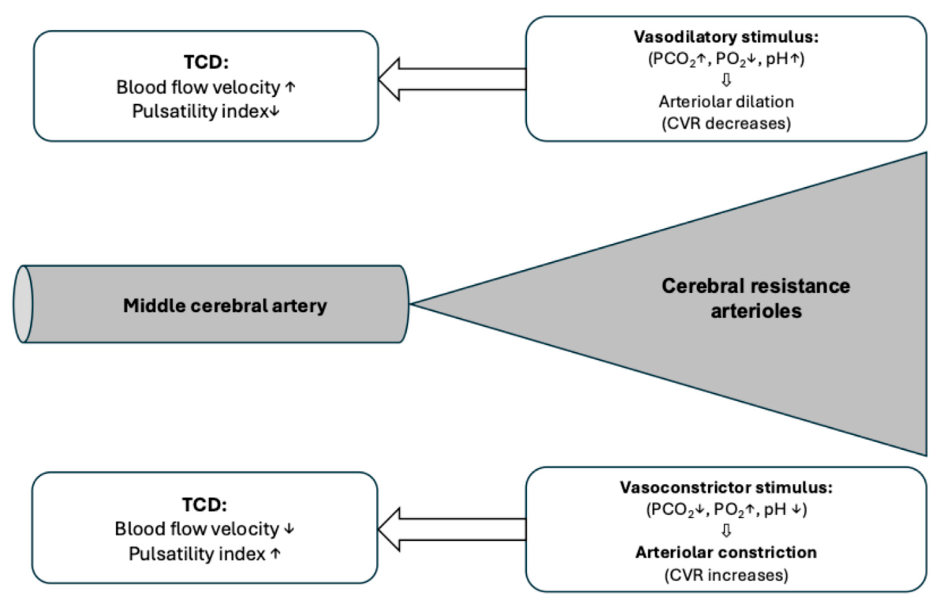 - Regenhardt, R.W.; Nolan, N.M.; Das, A.S.; Mahajan, R.; Monk, A.D.; LaRose, S.L.; Migdady, I.; Chen, Y.; Sheriff, F.; Bai, X.; et al. Transcranial Doppler cerebrovascular reactivity: Thresholds for clinical significance in cerebrovascular disease. J. Neuroimaging 2024, 34, 348–355. [Google Scholar] [CrossRef]