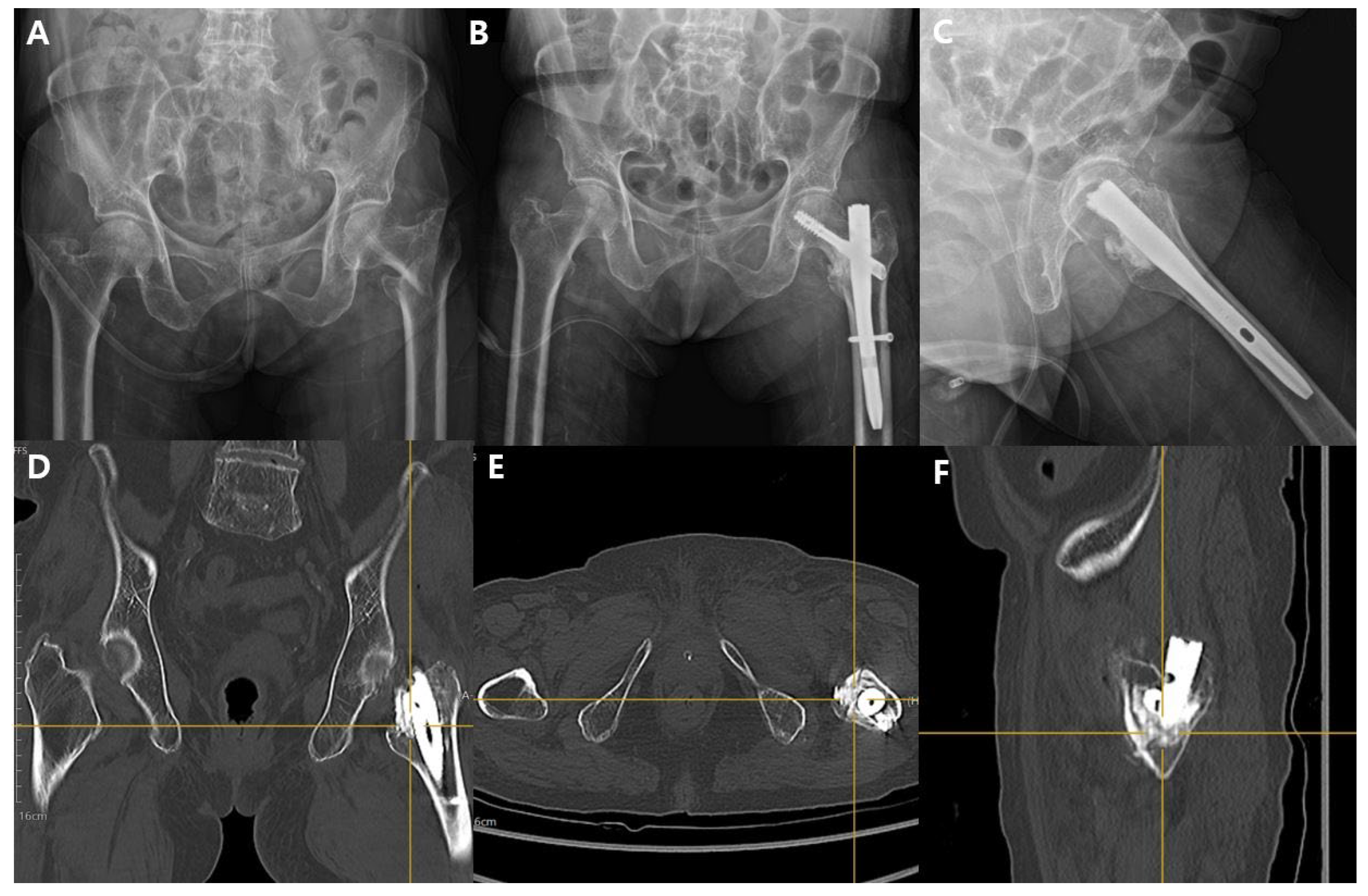 - Klima, M.L. Mechanical Complications After Intramedullary Fixation of Extracapsular Hip Fractures. JAAOS - J. Am. Acad. Orthop. Surg. 2022, 30, e1550–e1562. [Google Scholar] [CrossRef] [PubMed]