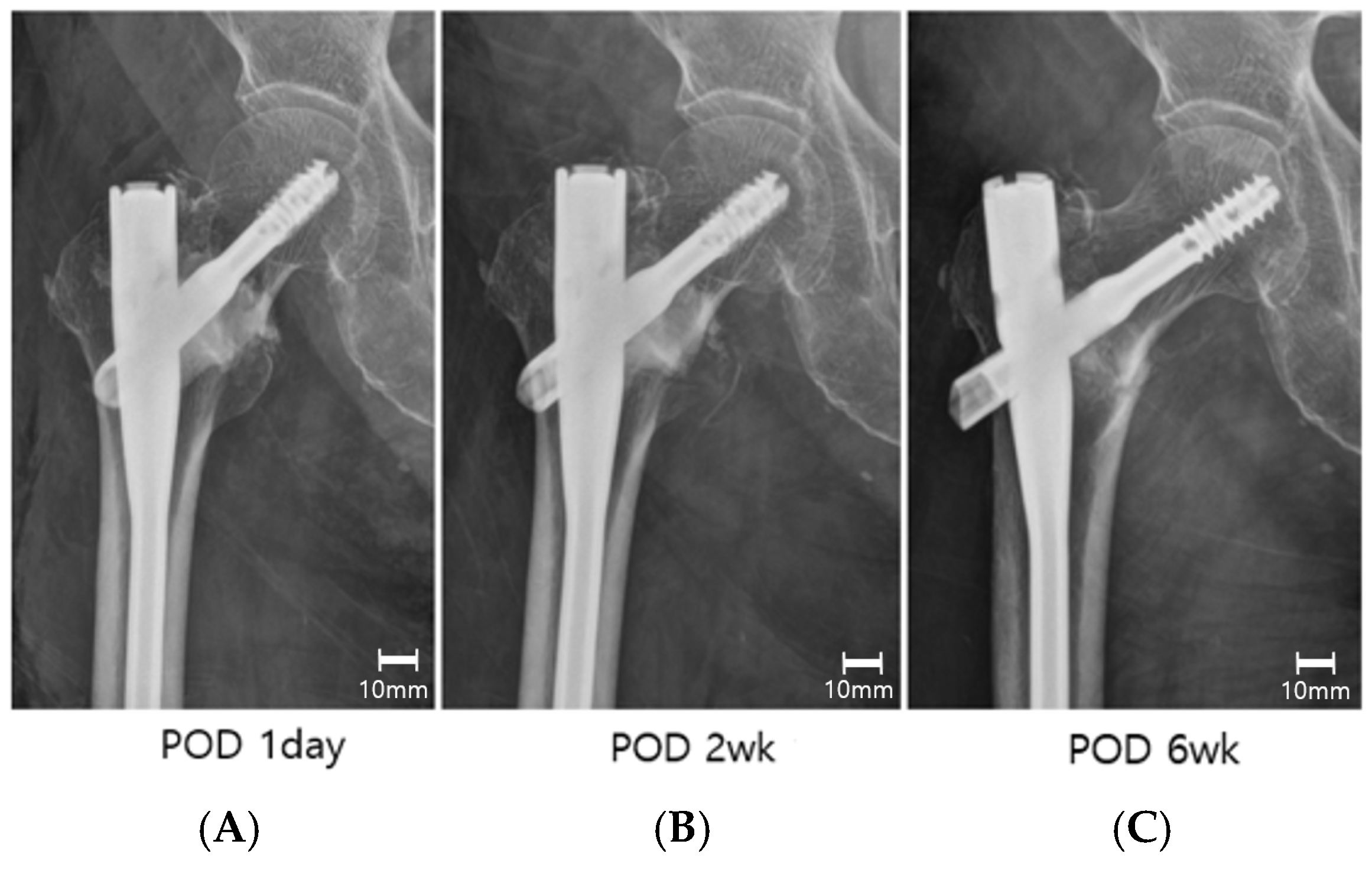 APA StyleLee, C. H., Kim, H. T., Sohn, H. M., Kim, G. C., Jin, E. J., & Jo, S. (2025). Efficacy of Injectable Calcium Composite Bone Substitute Augmentation for Osteoporotic Intertrochanteric Fractures: A Prospective, Non-Randomized Controlled Study. Journal of Clinical Medicine, 14(23), 8536. https://doi.org/10.3390/jcm14238536