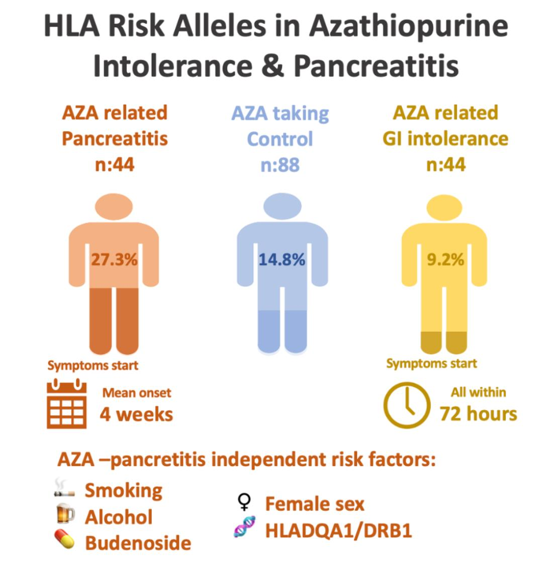 Eskazan, T.; Bakkaloglu, O.K.; Toruner, M.; Kani, H.T.; Cavus, B.; Yilmaz, V.; Unal, N.G.; Atug, O.; Cagcag, B.; Dogruel, M.; et al. Comparison of Azathioprine-Induced Pancreatitis and Gastrointestinal Intolerance in IBD: Role of Demographics, Clinical Variables, and HLA DQA1/DRB1 Alleles. J. Clin. Med. 2025, 14, 8539. https://doi.org/10.3390/jcm14238539