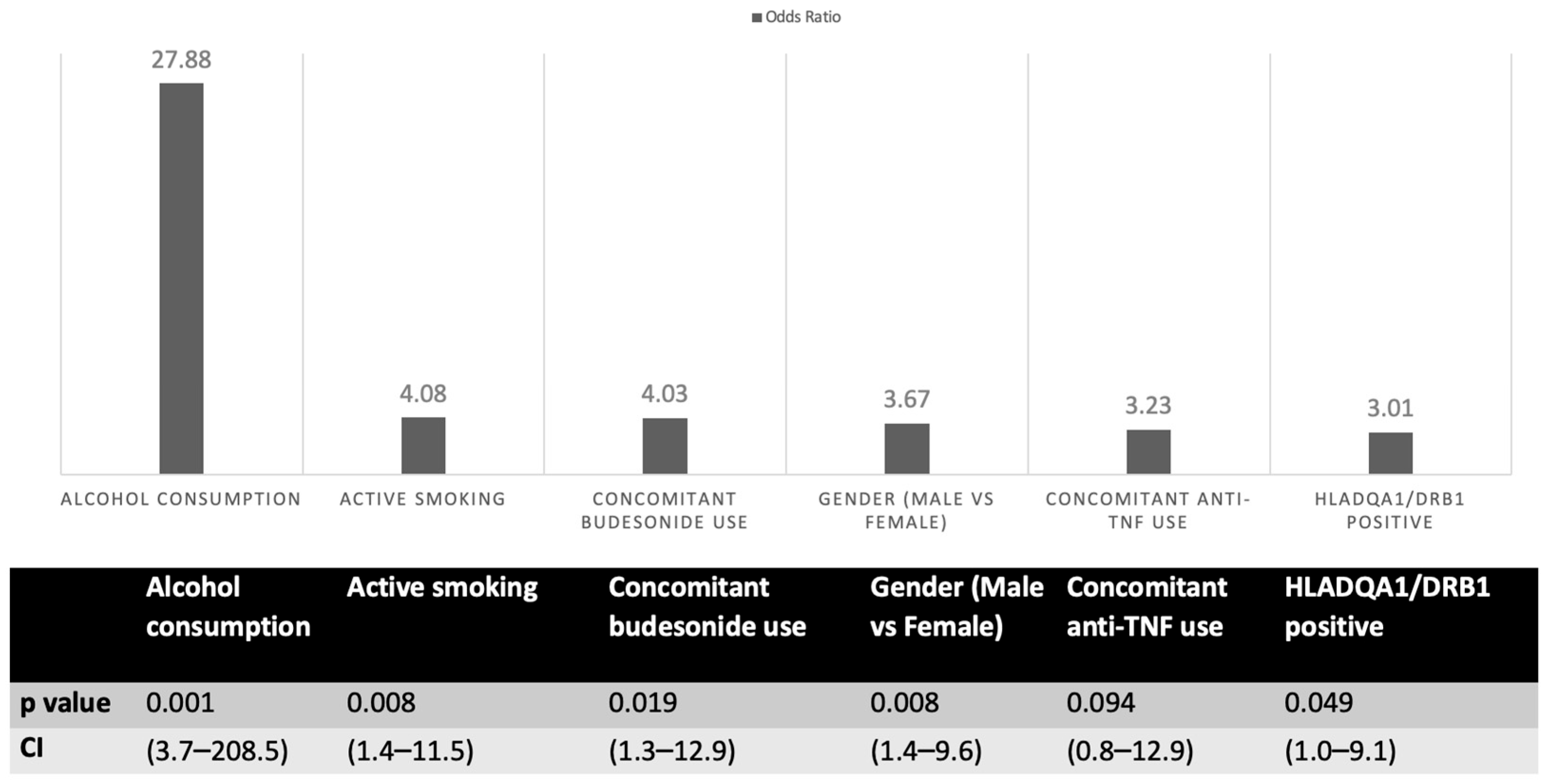 | DQA1/DRB1 (any positivity) | 14.8 | 27.3 | 9.2 | 0.08 | 0.42 |