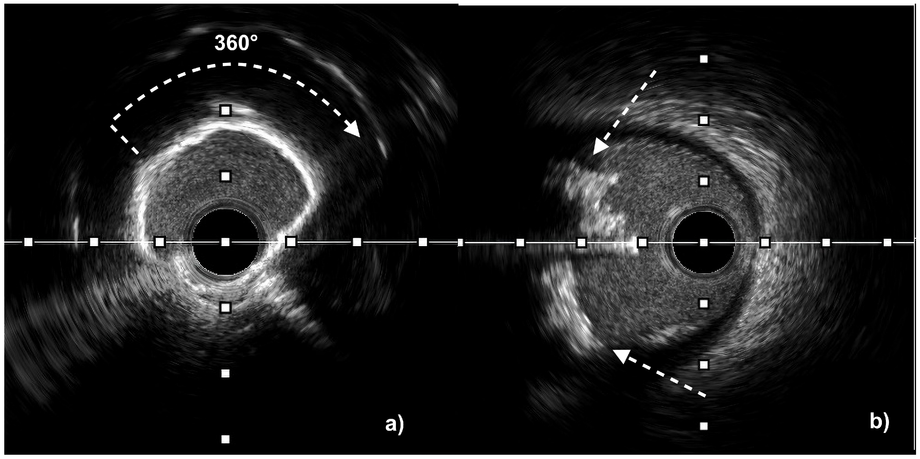 - Zhang, M.; Matsumura, M.; Usui, E.; Noguchi, M.; Fujimura, T.; Fall, K.N.; Zhang, Z.; Nazif, T.M.; Parikh, S.A.; Rabbani, L.E.; et al. Intravascular Ultrasound-Derived Calcium Score to Predict Stent Expansion in Severely Calcified Lesions. Circ. Cardiovasc. Interv. 2021, 14, e010296. [Google Scholar] [CrossRef]