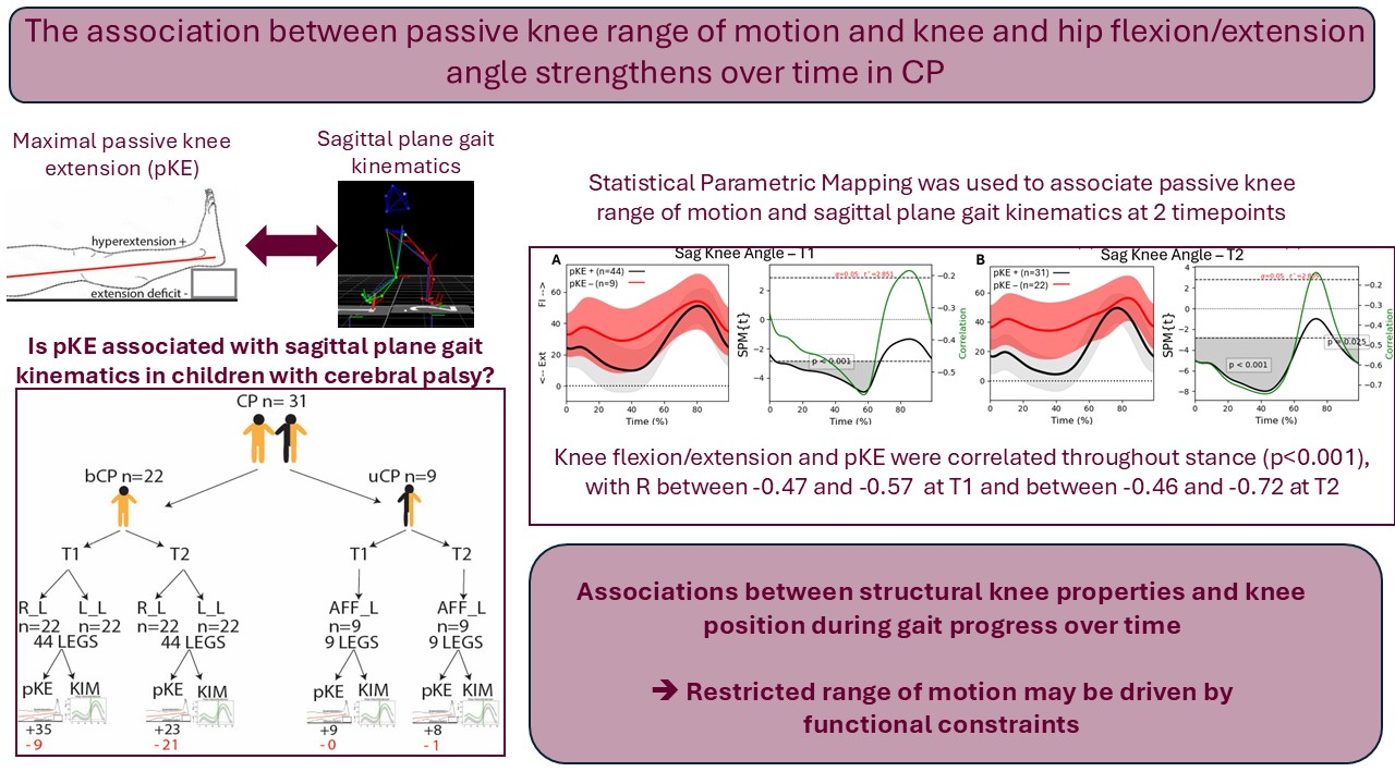 - A relatively small limitation of passive knee extension was associated with knee flexion during gait that strengthened with age and was more prominent in bilateral CP