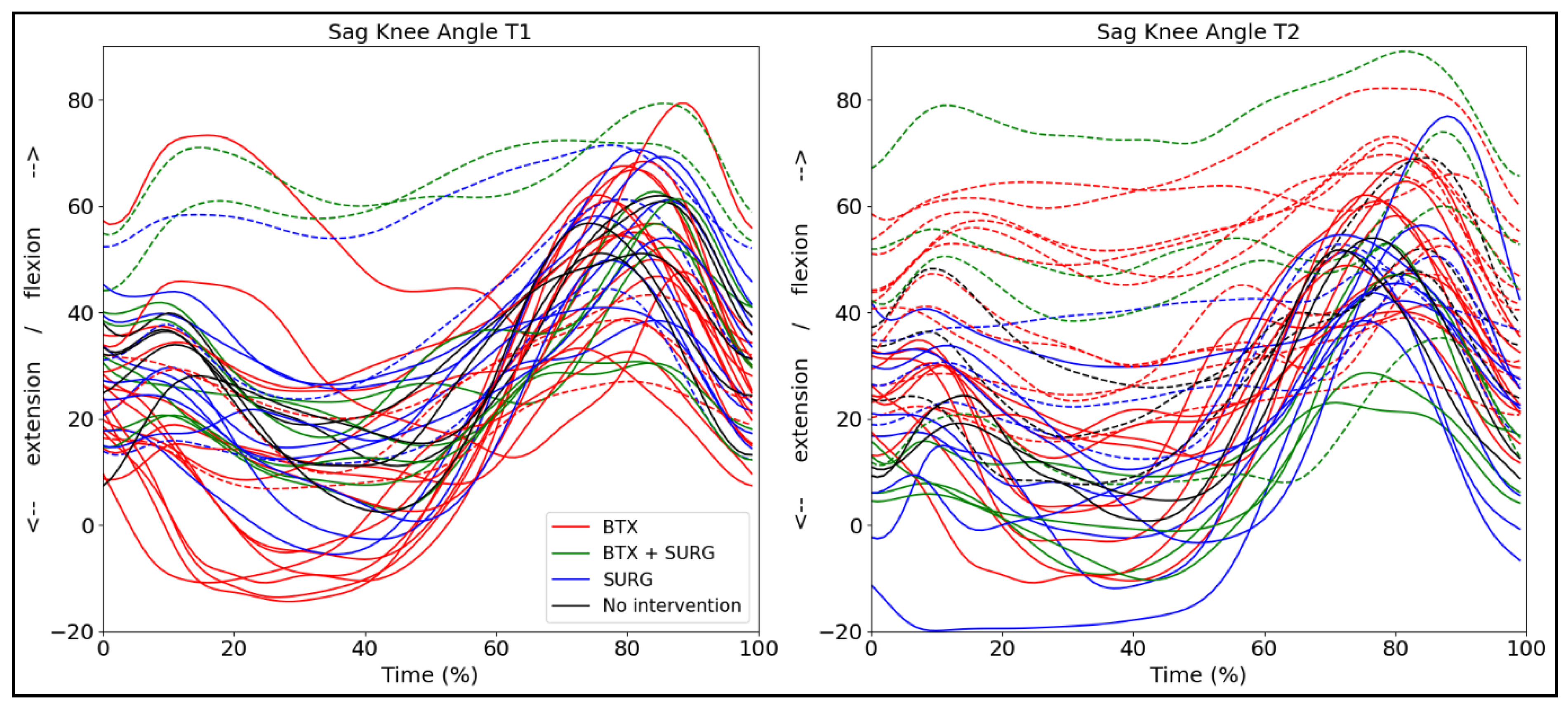 - Knee flexion during gait remained stable over time despite the increasing number of children with knee contractures