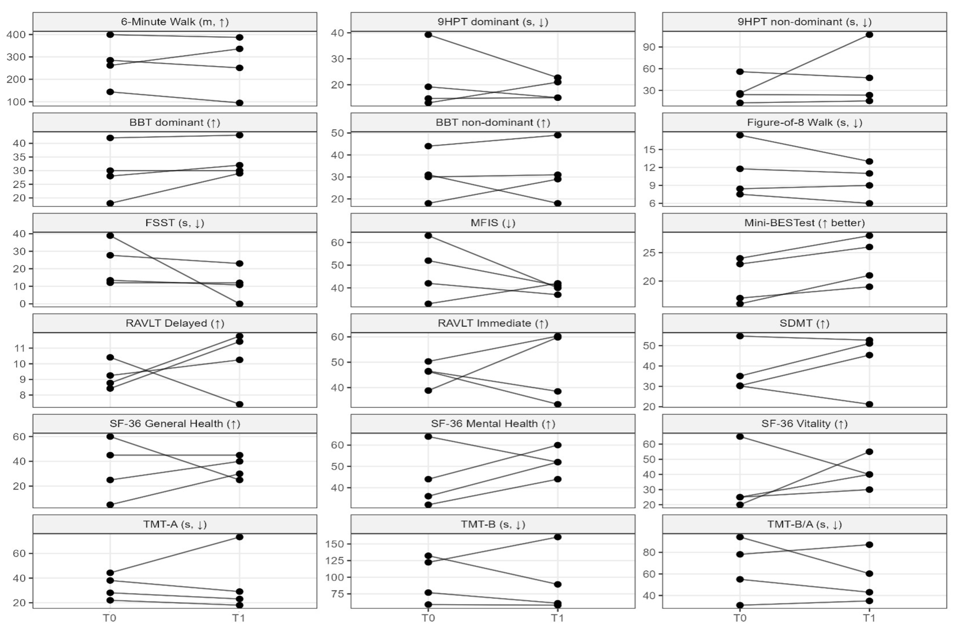 | 9HPT (dominant hand), seconds | 16.94 (14.27–24.22) | 18.00 (6.43–21.43) |