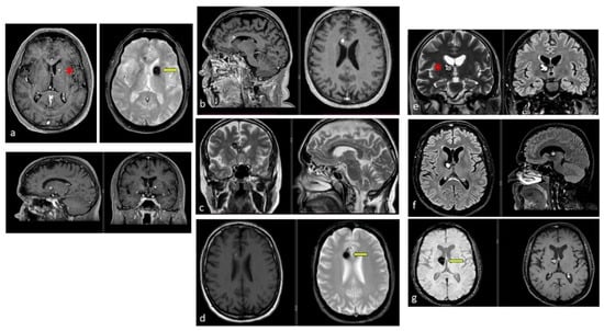 - Pandey, P.; Westbroek, E.M.; Gooderham, P.A.; Steinberg, G.K. Cavernous Malformation of Brainstem, Thalamus, and Basal Ganglia: A Series of 176 Patients. Neurosurgery 2013, 72, 573–589; discussion 588–589. [Google Scholar] [CrossRef]