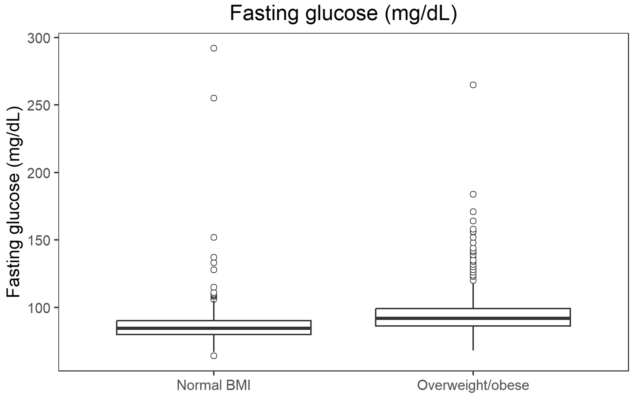 Figure 2. Boxplot of fasting glucose by BMI category.