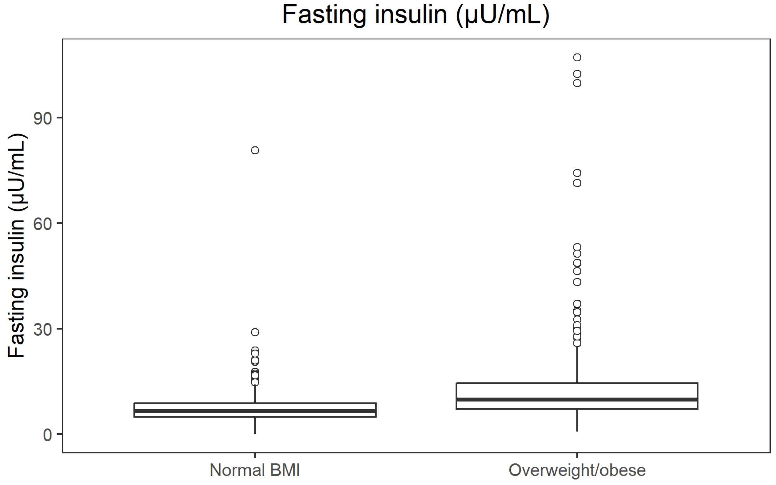 Figure 4. Boxplot of fasting insulin by BMI category.