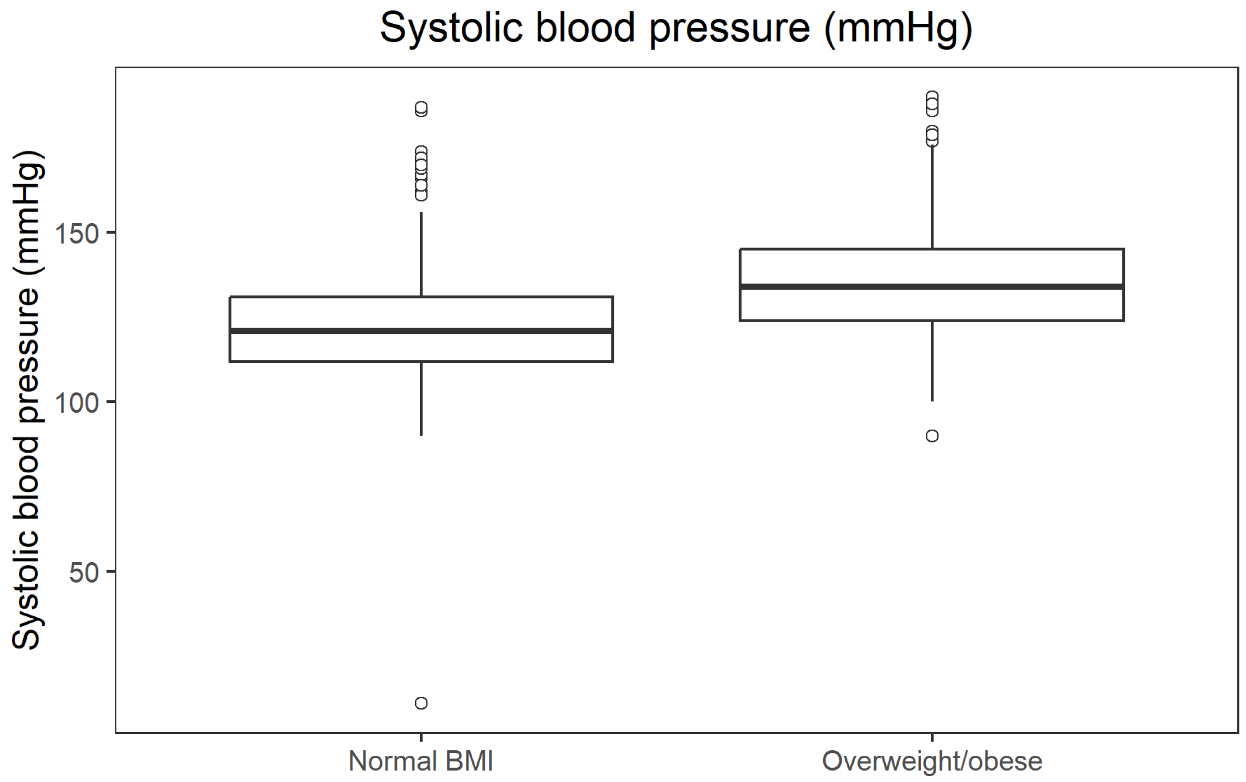 Figure 5. Boxplot of systolic blood pressure by BMI category.