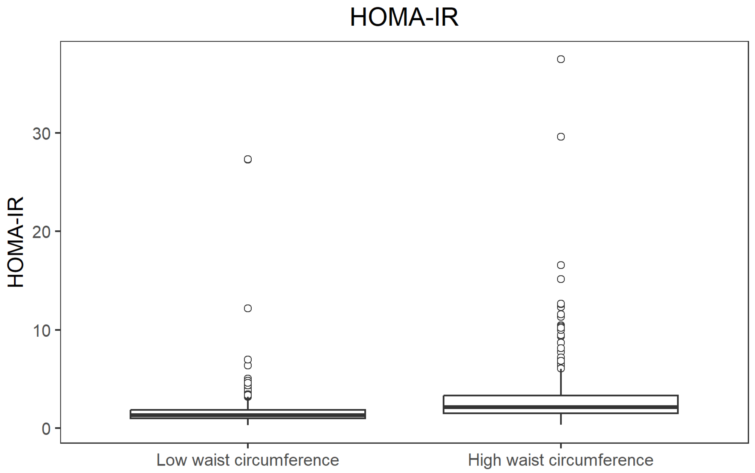 Figure 6. Boxplot of HOMA-IR by waist circumference group.