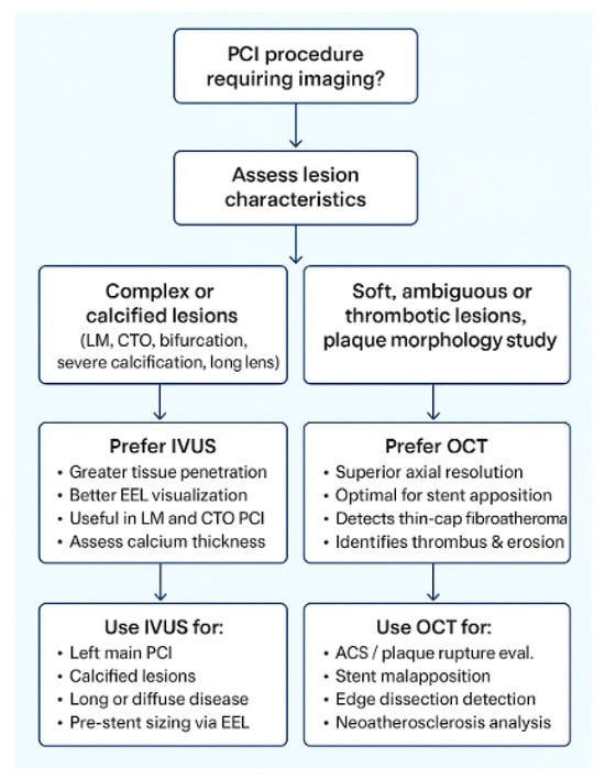 - Hong, S.J.; Lee, S.J.; Lee, S.H.; Lee, J.Y.; Cho, D.K.; Kim, J.W.; Kim, S.M.; Hur, S.H.; Heo, J.H.; Jang, J.Y.; et al. Optical coherence tomography-guided versus angiography-guided percutaneous coronary intervention for patients with complex lesions (OCCUPI): An investigator-initiated, multicentre, randomised, open-label, superiority trial in South Korea. Lancet 2024, 404, 1029–1039. [Google Scholar] [CrossRef]
