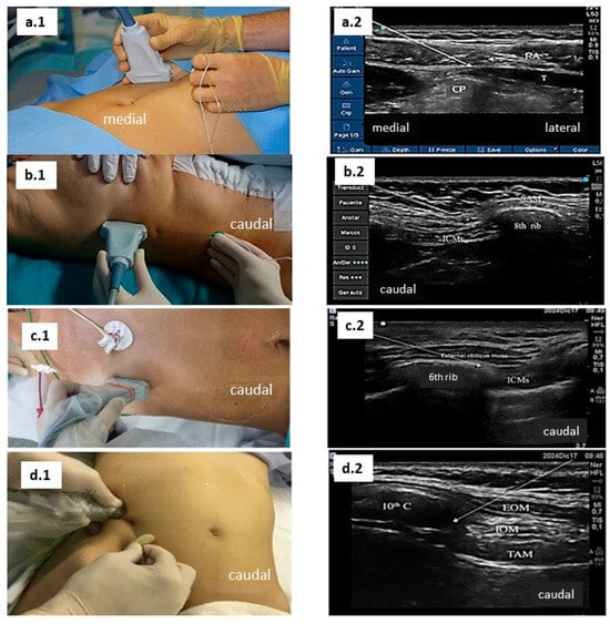 - Hebbard, P. Subcostal Transversus Abdominis Plane Block Under Ultrasound Guidance. Anesth. Analg. 2008, 106, 674–675. [Google Scholar] [CrossRef]