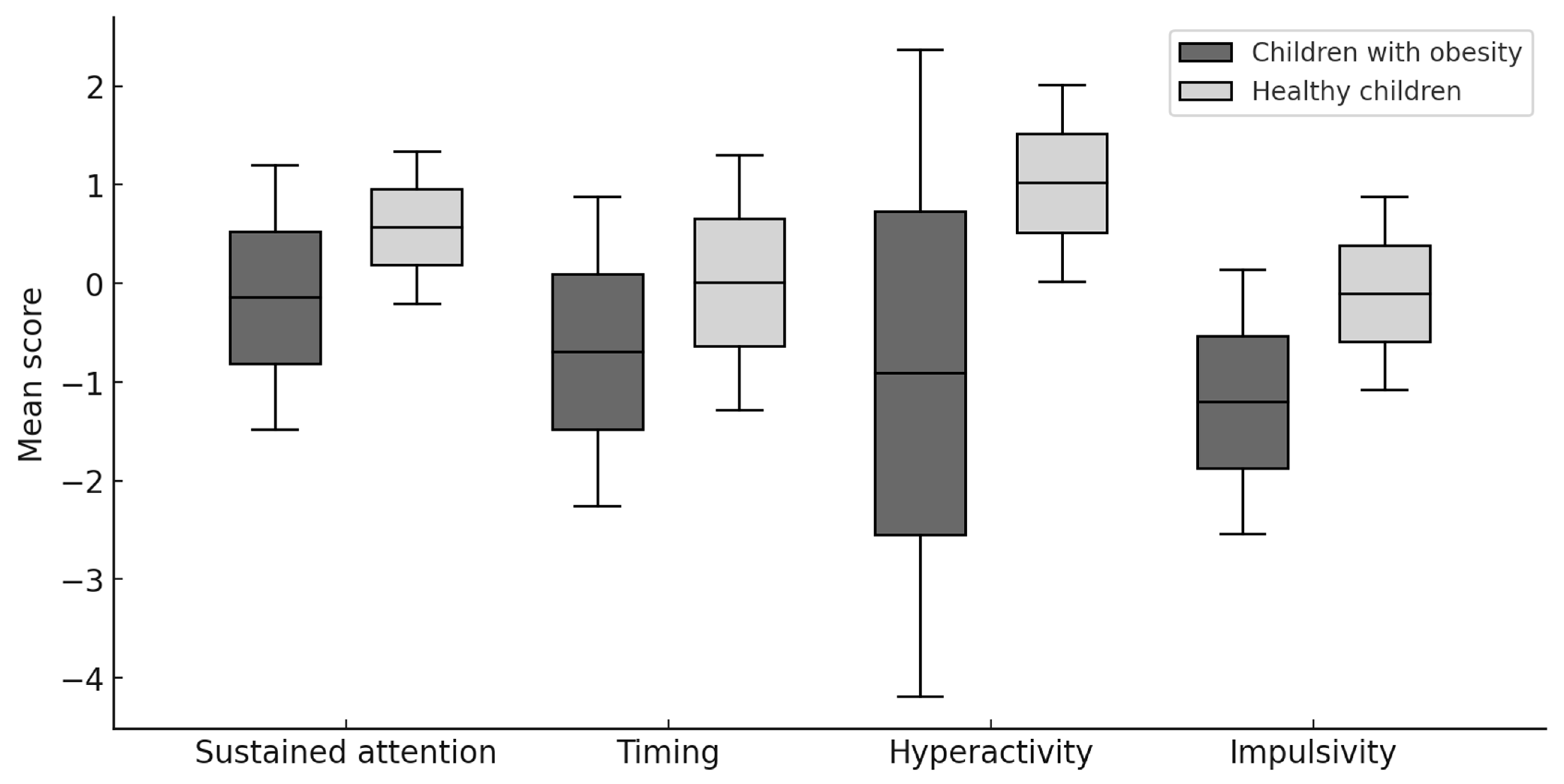 Majewska, K.A.; Stanisławska-Kubiak, M.; Wais, P.; Budzulak, J.; Mojs, E.; Kędzia, A. Impaired Attention Functioning in Children and Adolescents with Obesity: Preliminary Results Based on the Computerized Continuous Performance Test. J. Clin. Med. 2025, 14, 8656. https://doi.org/10.3390/jcm14248656