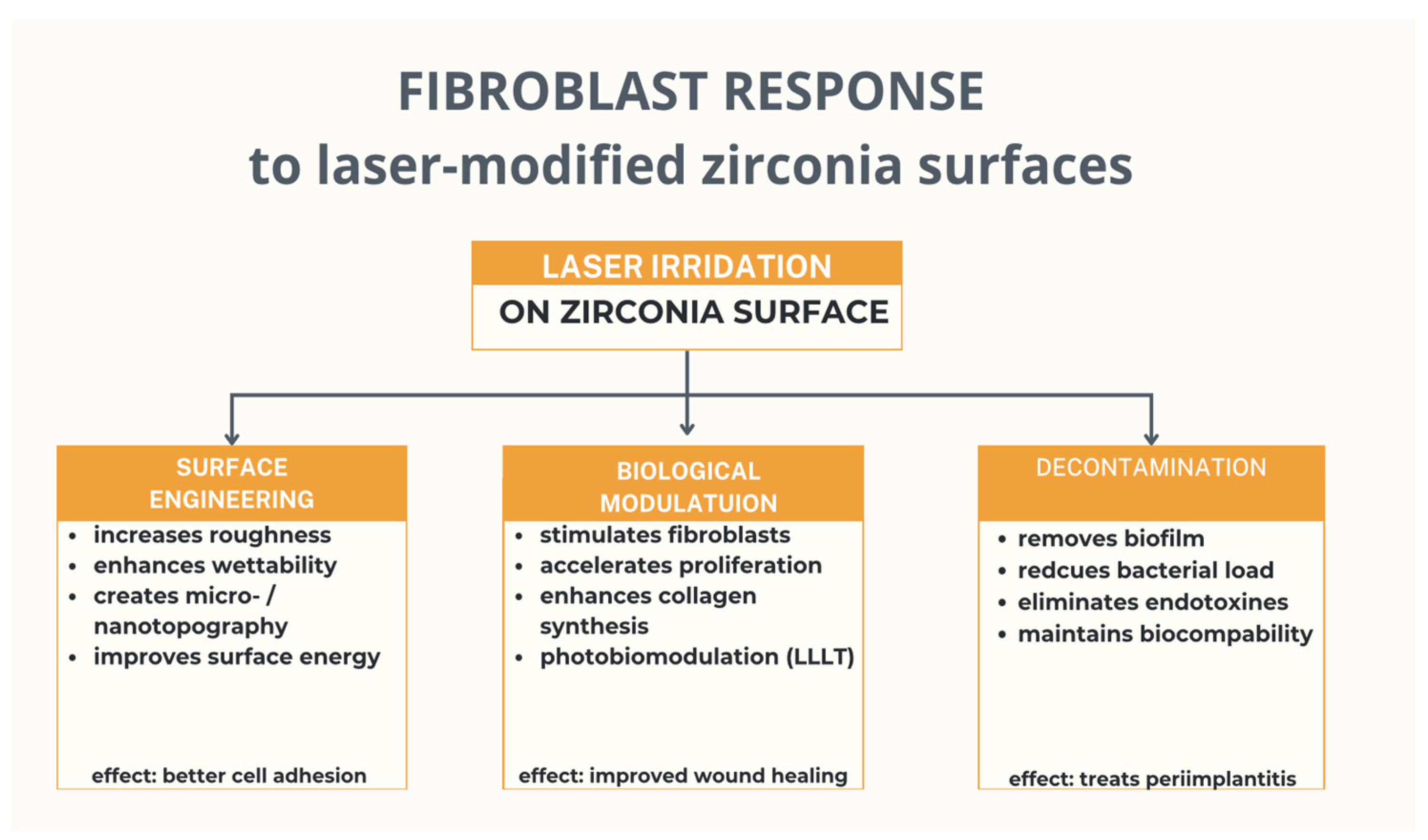 - Application of laser treatment to fibroblasts cultured on zirconia surfaces;