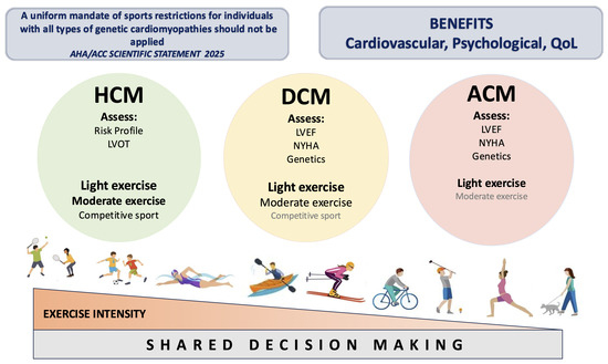 - Kim, J.H.; Baggish, A.L.; Levine, B.D.; Ackerman, M.J.; Day, S.M.; Dineen, E.H.; Guseh Ii, J.S.; La Gerche, A.; Lampert, R.; Martinez, M.W.; et al. Clinical Considerations for Competitive Sports Participation for Athletes with Cardiovascular Abnormalities: A Scientific Statement from the American Heart Association and American College of Cardiology. J. Am. Coll. Cardiol. 2025, 85, 1059–1108. [Google Scholar] [CrossRef] [PubMed]