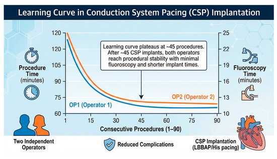 Santoro, A.; Baiocchi, C.; Collantoni, M.; Lunghetti, S.; Morrone, F.; Manetti, N.; Spaccaterra, L.; Petrini, A.; Taddeucci, S.; Fineschi, M. Assessing the Learning Curve in Conduction System Pacing Implantation. J. Clin. Med. 2025, 14, 8684. https://doi.org/10.3390/jcm14248684