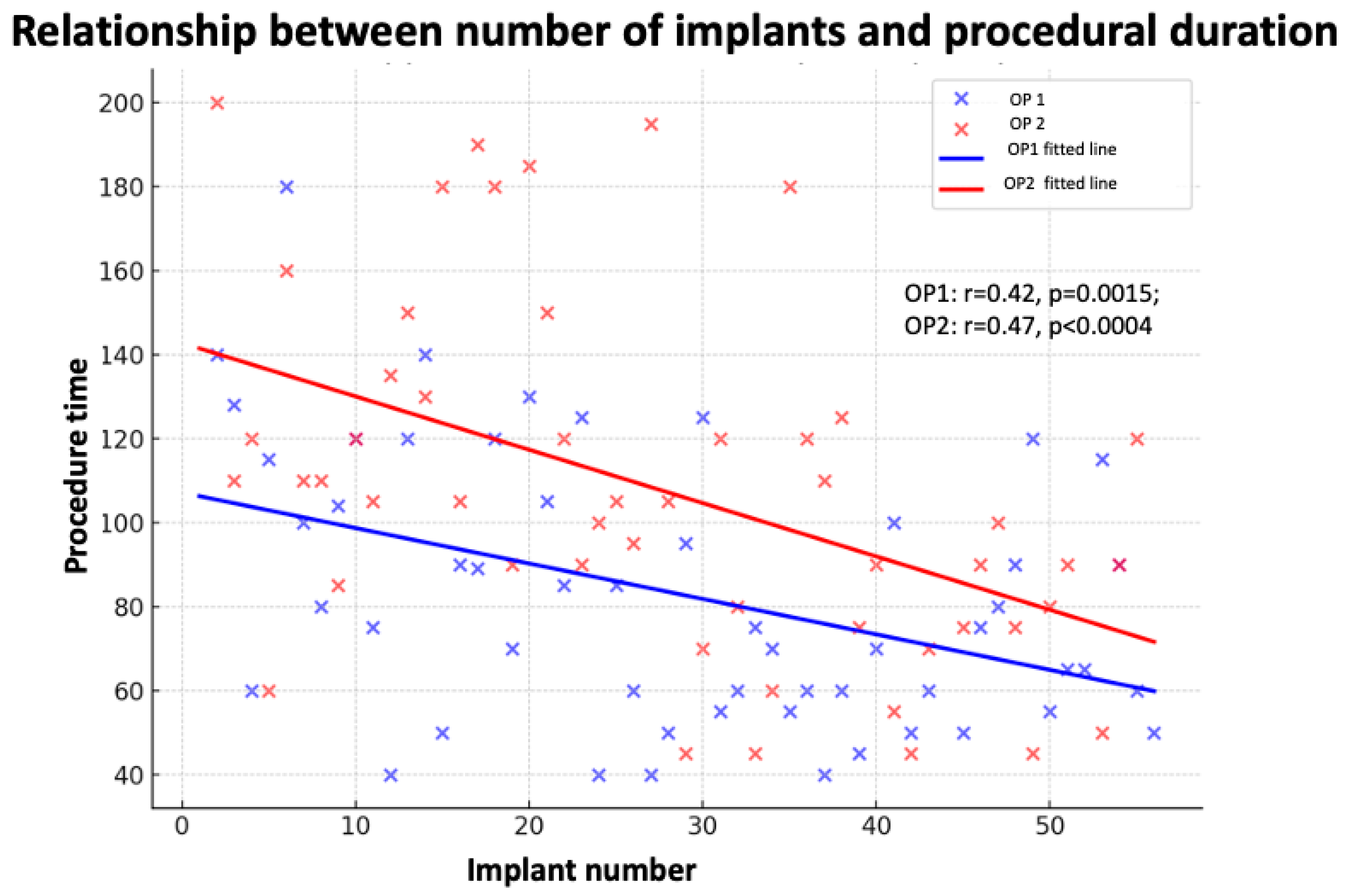 | Implant number | 0.28 | −0.60 (−0.89 to −0.30) | <0.001 | −0.23 (−2.92 to 2.46) | 0.856 |