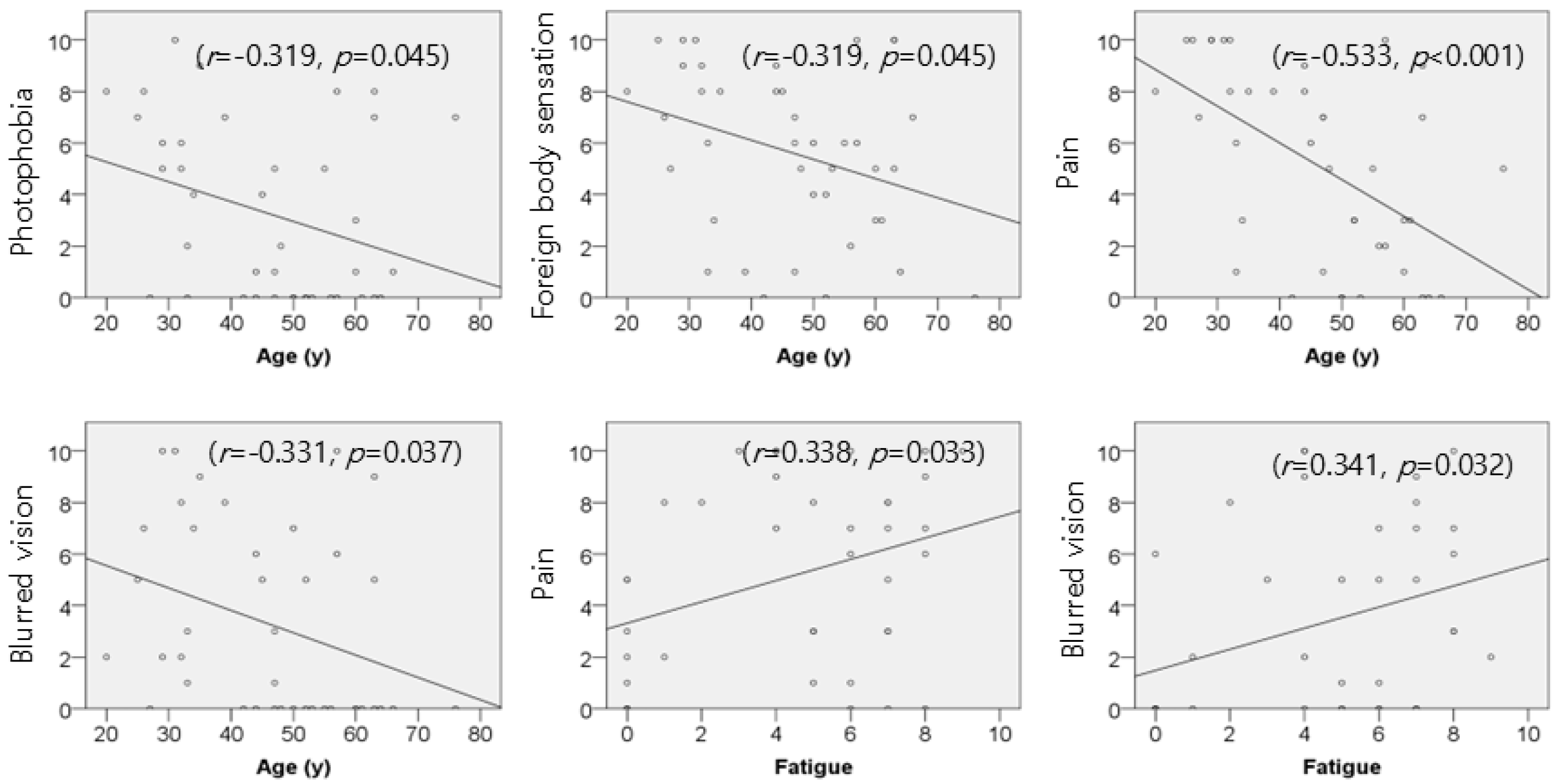 3.2. Association of Age and Fatigue with Symptom Severity in RCES