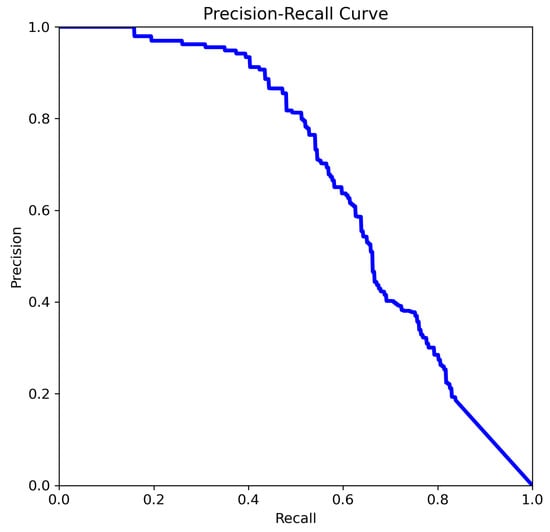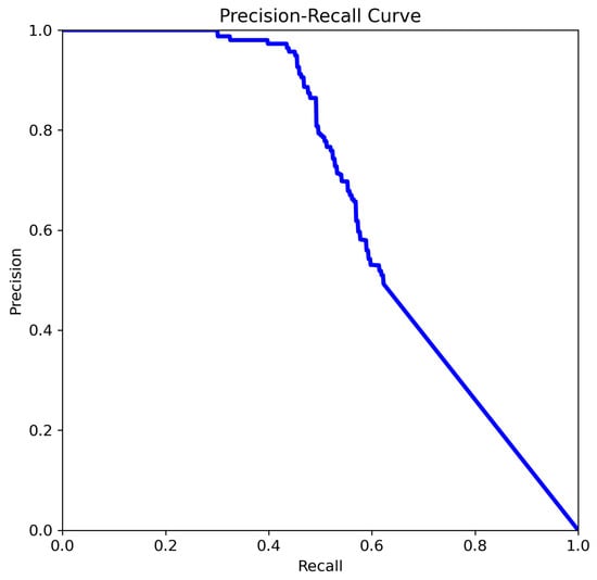 - Precision (P)—Precision quantifies the proportion of true positives among all predictions, assessing the model’s capability to avoid false positives:where TP is a true positive and FP is a false positive [24].