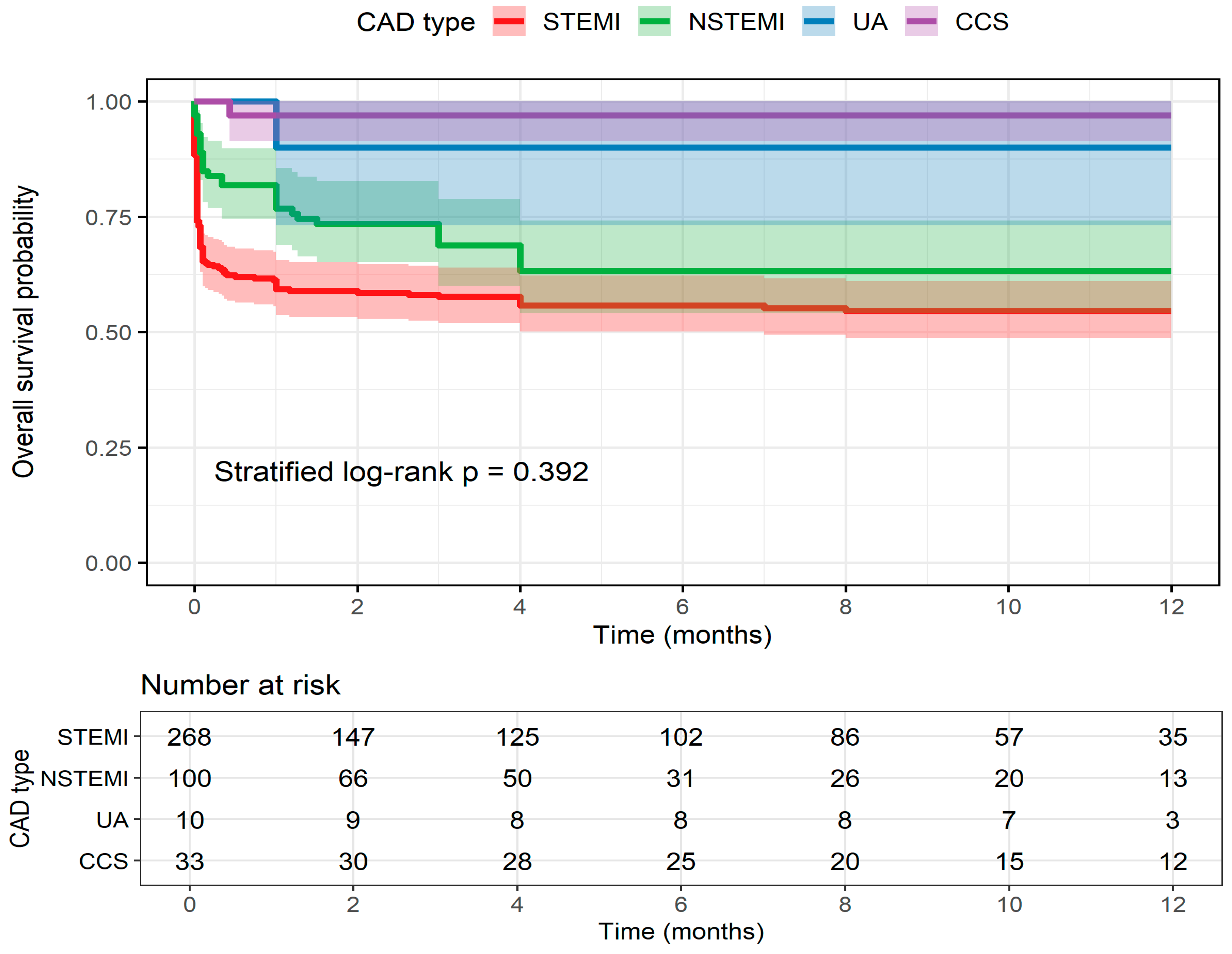- Bennar, W.; Garin, D.; Zhi, Y.; Schaffner, C.; Pittet, T.; Attinger, A.; Togni, M.; Cuculi, F.; Cook, S.; Bossard, M.; et al. Safety and Efficacy of Cangrelor in Acute Myocardial Infarction-Related Cardiogenic Shock with and Without Cardiac Arrest. Catheter. Cardiovasc. Interv. 2025, 106, 2395–2409. [Google Scholar] [CrossRef]