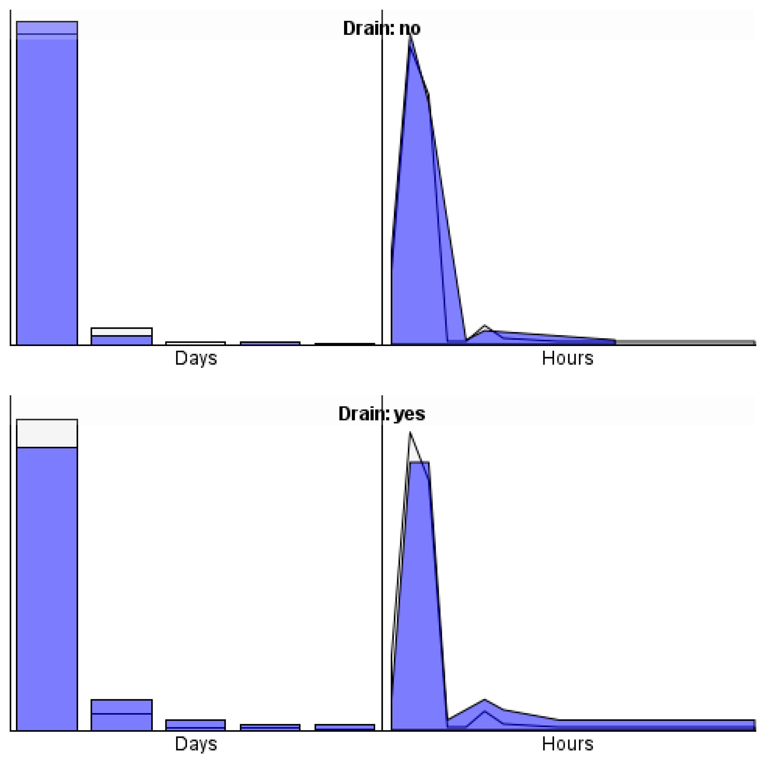 3.1. Postoperative Drain Insertion, and the Time from Surgery to Discharge