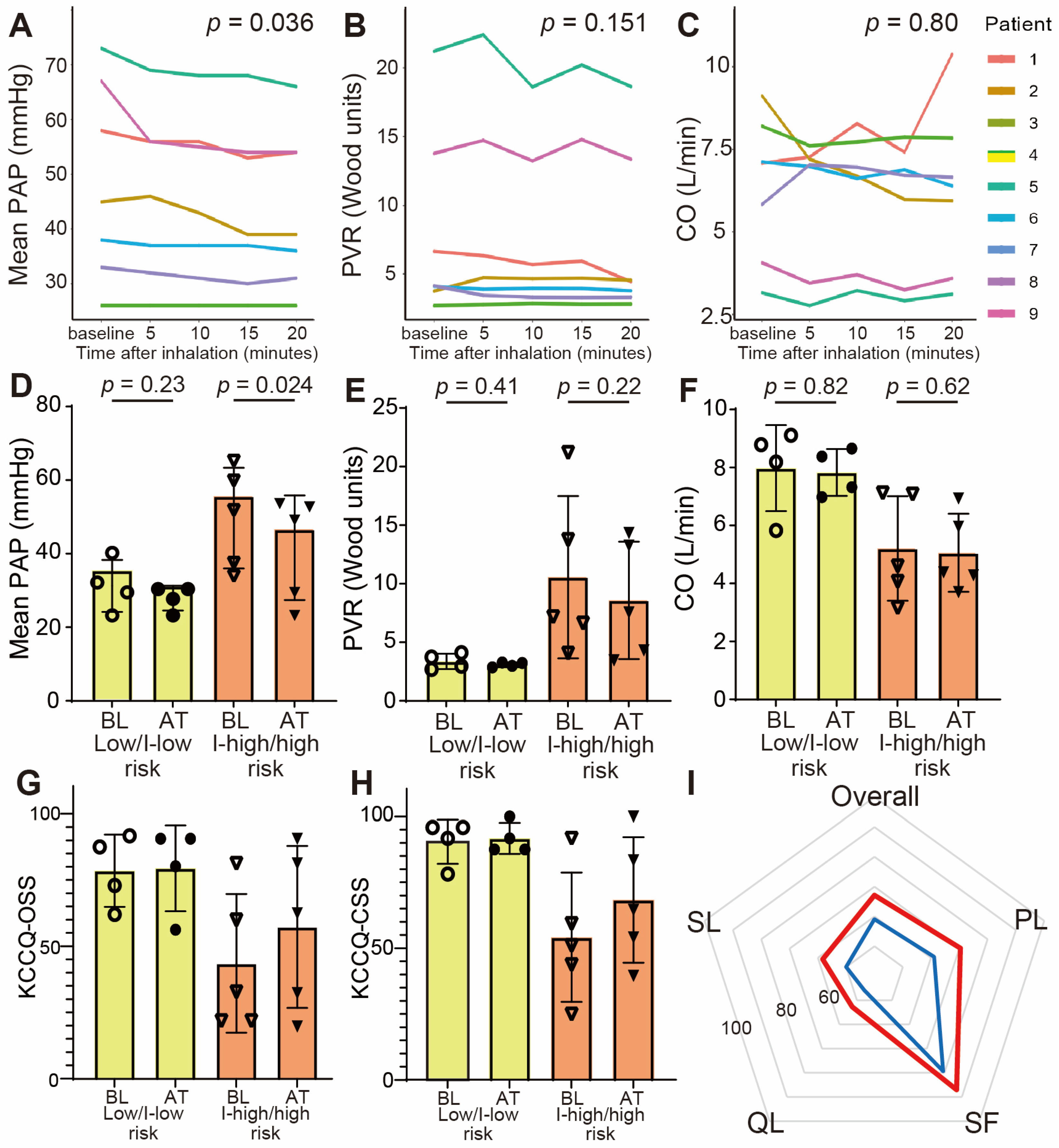 | 9 | 76 | M | HPAH | 16.2 | III | high | Macitentan 10 mg Riociguat 7.5 mg Selexipag 3.2 mg | 294.5 | 18.2 | 67 | 13.8 | 4.1 | 8 | 97.6 | 73.8 | NA | 21.9 |