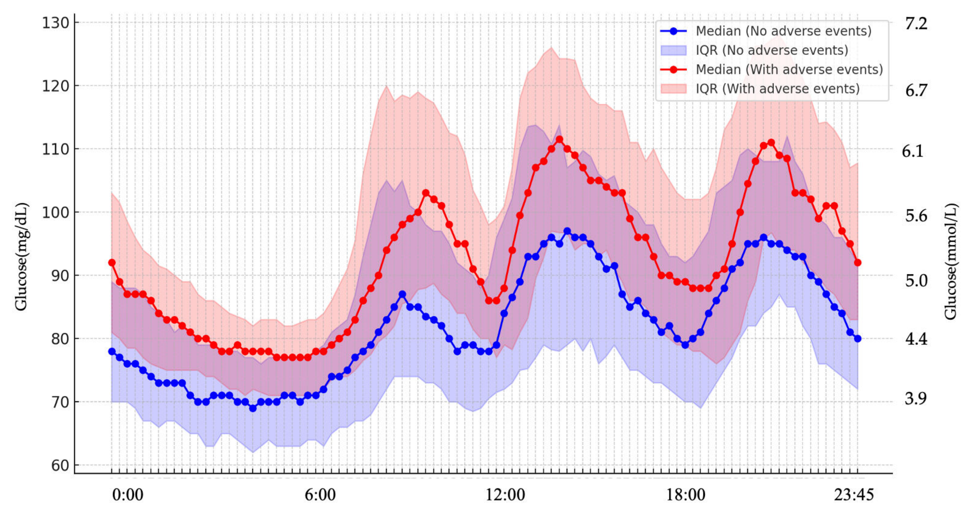 - Liang, X.; Fu, Y.; Lu, S.; Shuai, M.; Miao, Z.; Gou, W.; Shen, L.; Liang, Y.; Xu, F.; Tian, Y.; et al. Continuous glucose monitoring-derived glycemic metrics and adverse pregnancy outcomes among women with gestational diabetes: A prospective cohort study. Lancet Reg. Health West. Pac. 2023, 39, 100823. [Google Scholar] [CrossRef]