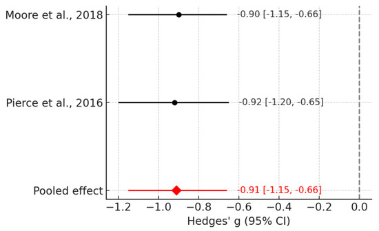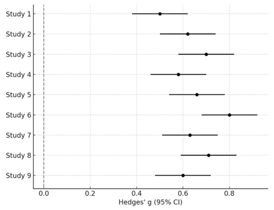 A random-effects model (restricted maximum likelihood, REML) was used to account for expected methodological heterogeneity across studies. Heterogeneity was quantified using I2, with values < 25%, 25–50%, and >50% interpreted as low, moderate, and high heterogeneity, respectively.