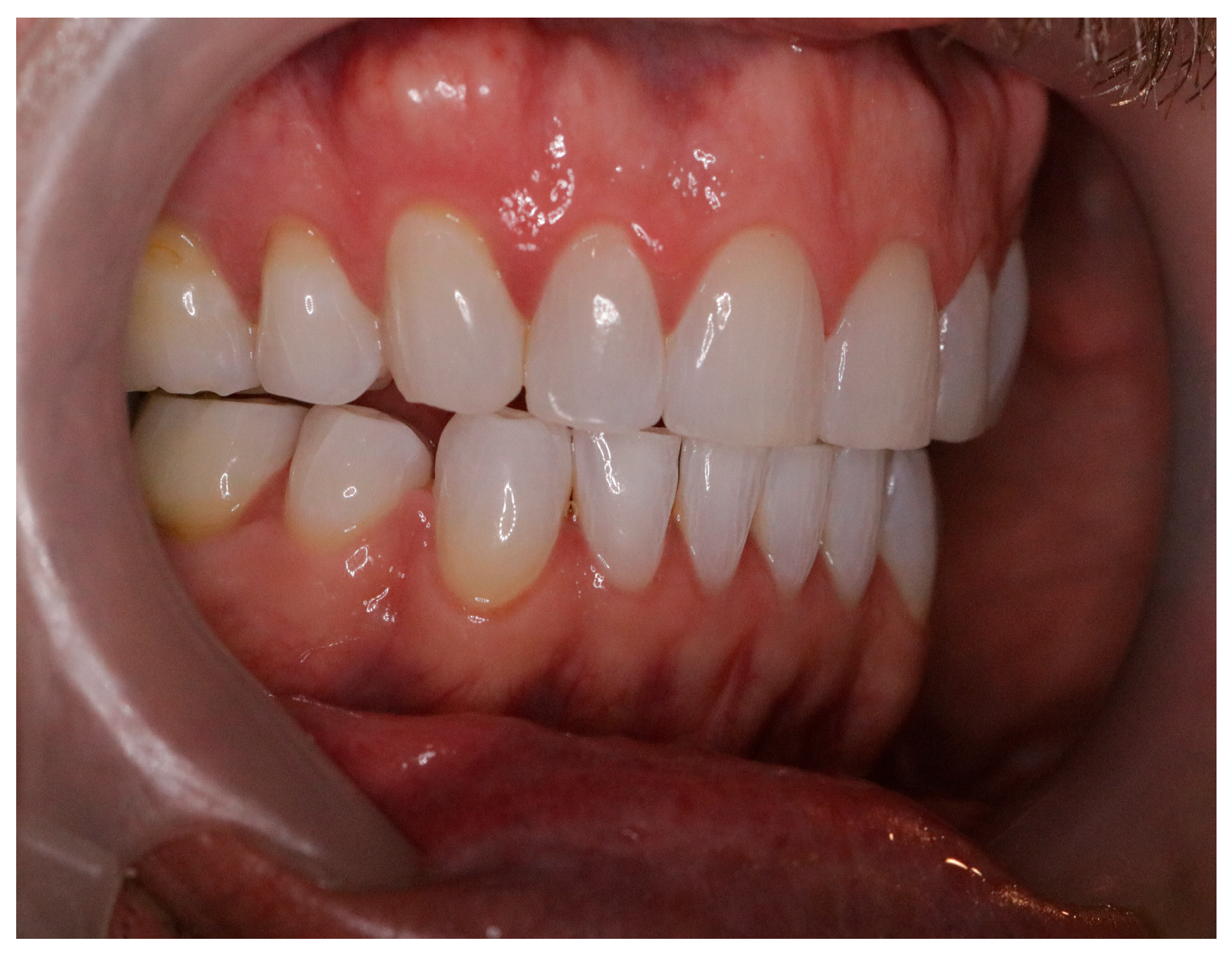 Bite Classification Type II: The Lower first molar is aligned more behind the upper first molar on both sides. This is commonly called an “overbite.”