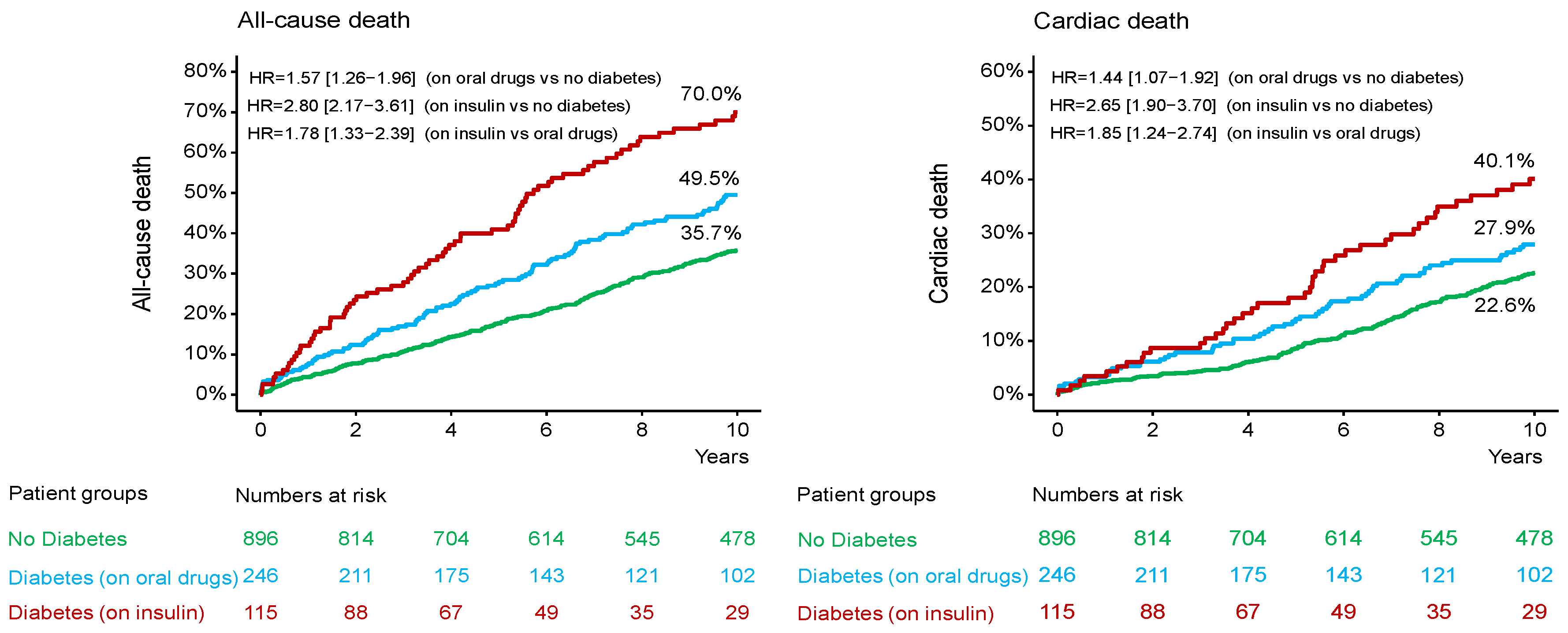 | On Oral Antidiabetic Drugs vs. No Diabetes | On Insulin Therapy vs. No Diabetes | On Insulin Therapy vs. Oral Antidiabetic Drugs | |
